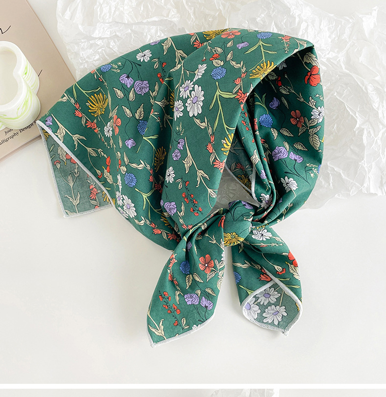 작은 꽃무늬 한국 스타일 봄 여름 신상 순면 작은 사각 스카프, 여성용 머리 스카프, 목 스카프, 얇은 스카프스토어 가기