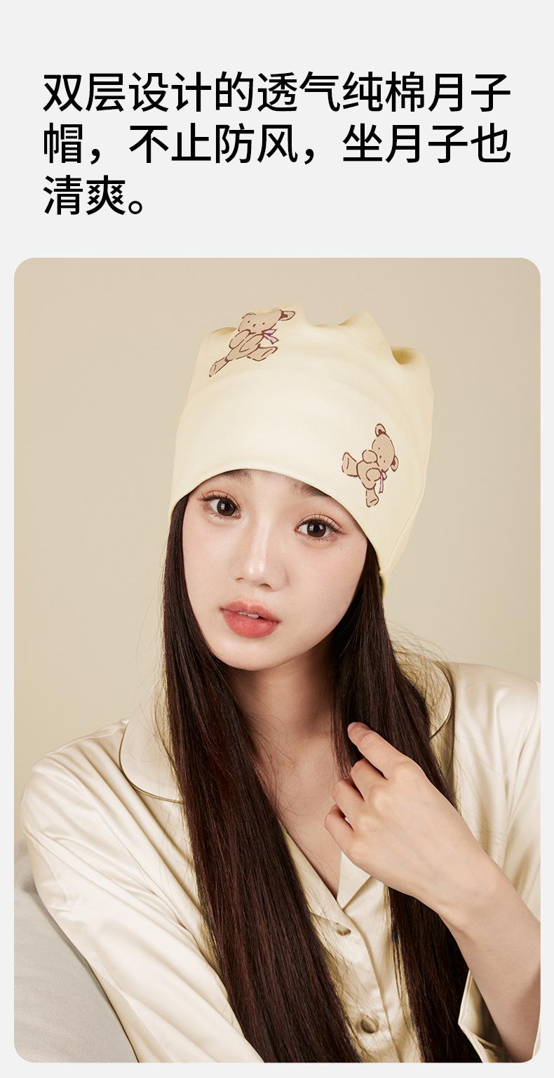 문 모자 산후 봄과 가을 면화 임산부 출생 모자 가을과 겨울 달 방풍 따뜻한 어머니 나이트캡 터번