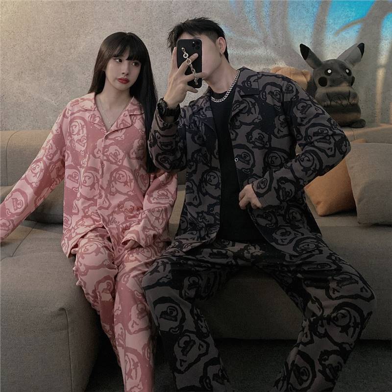 봄과 가을 폭발 커플 잠옷 여성용 긴 소매 얇은 만화 카디건 남성 의류 홈 세트스토어 가기