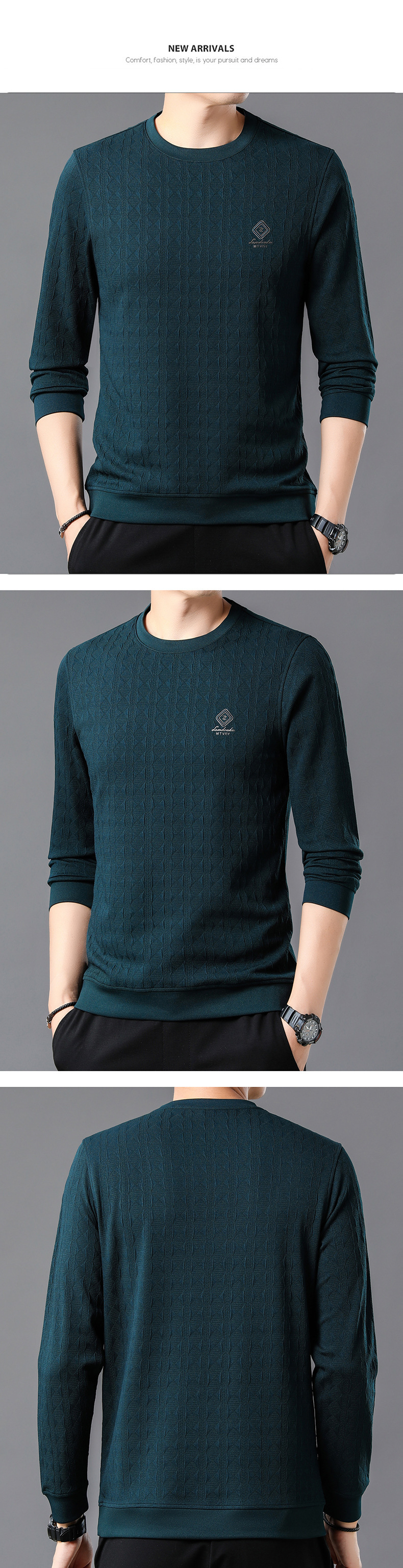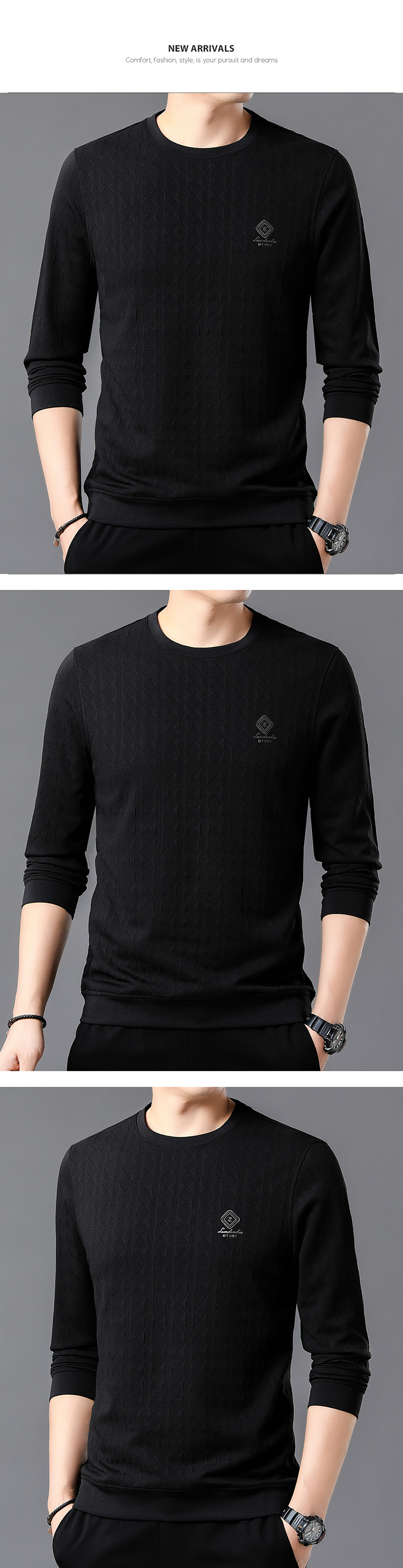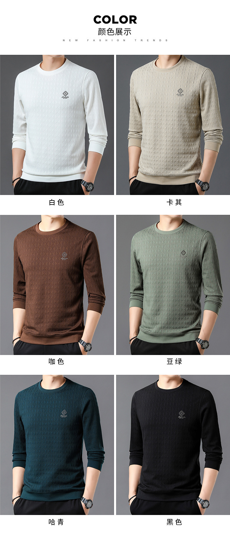 春秋男式卫衣新款青年韩版时尚提花圆领休闲运动薄款打底衫男体恤