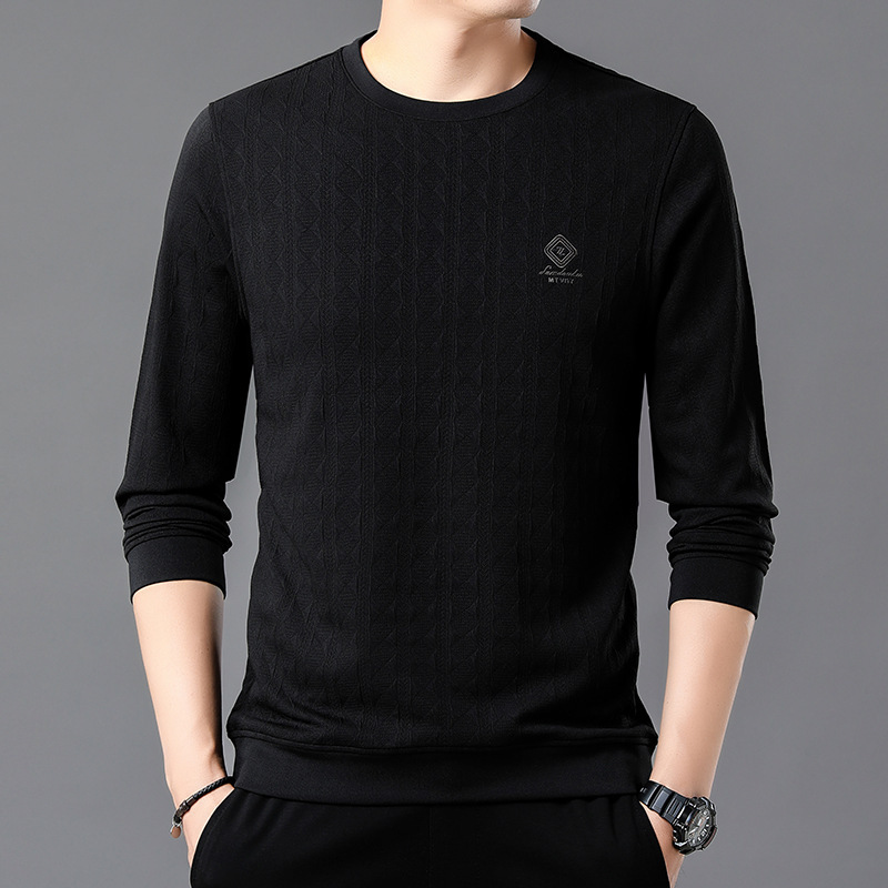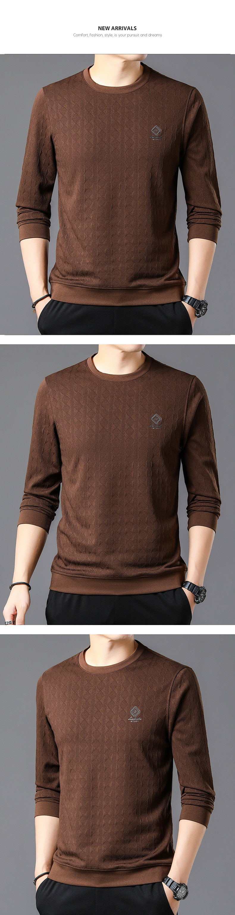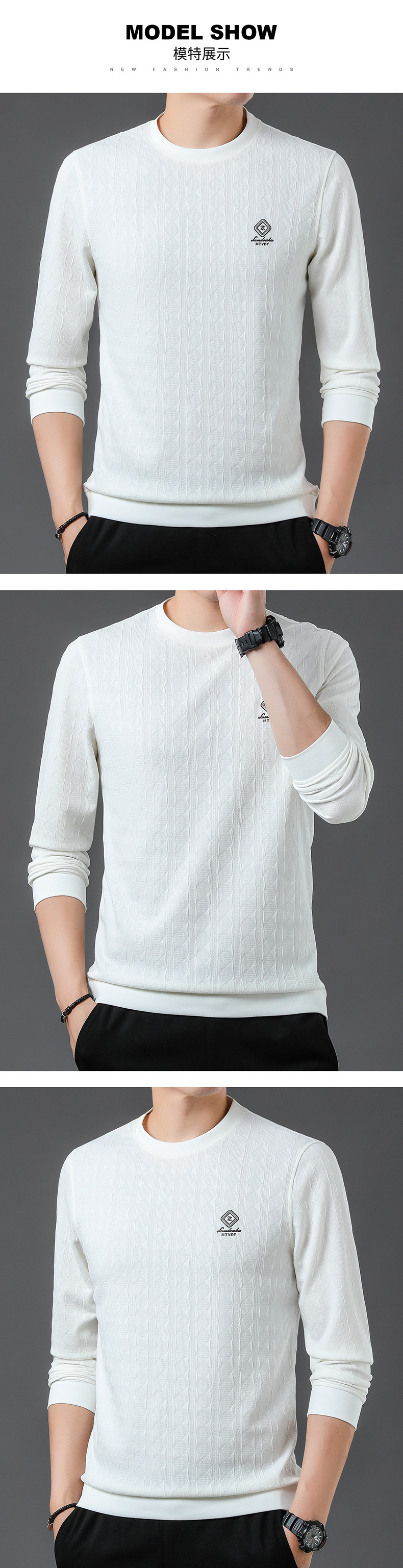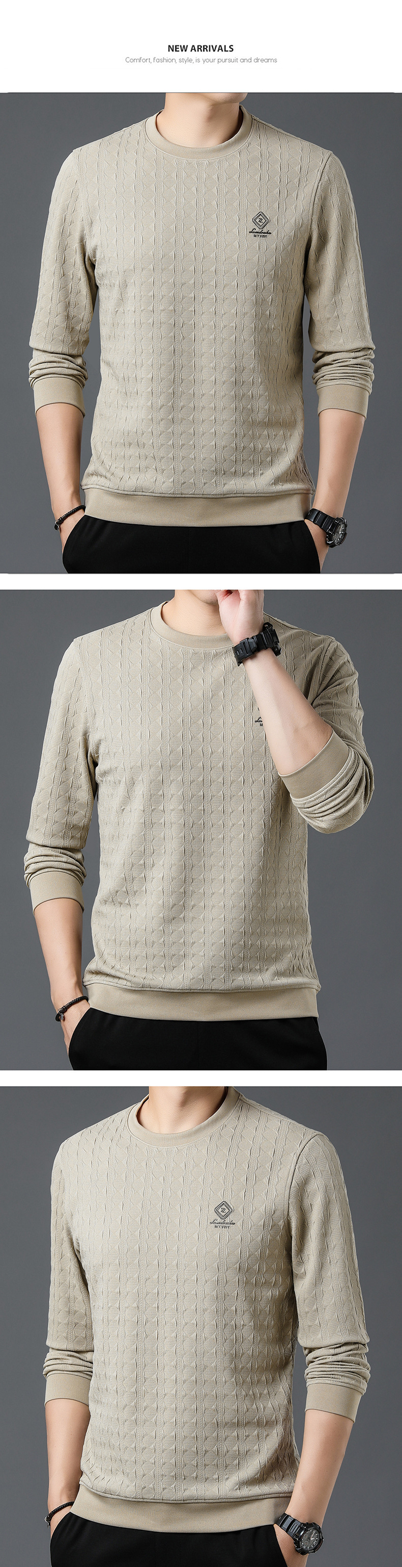 春秋男式卫衣新款青年韩版时尚提花圆领休闲运动薄款打底衫男体恤