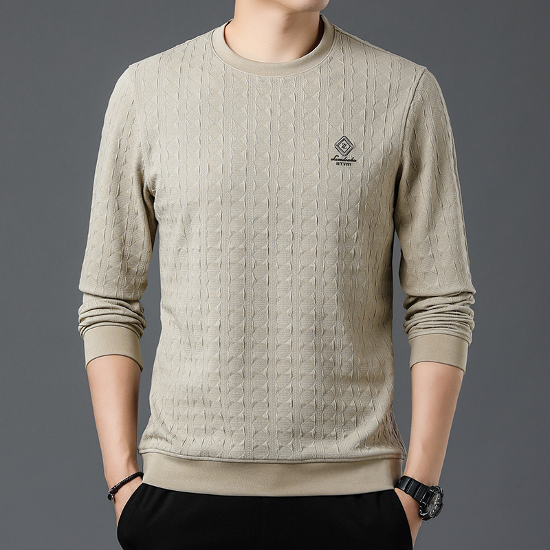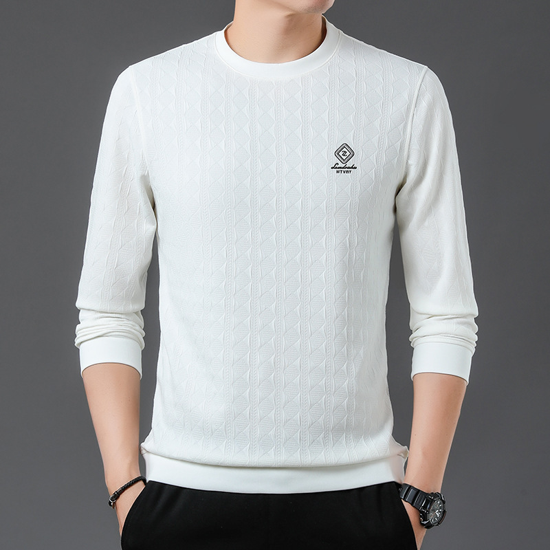 봄과 가을 남자 스웨터 새로운 청소년 한국 패션 자카드 라운드 넥 캐주얼 스포츠 얇은 베이스 셔츠 남자 티셔츠