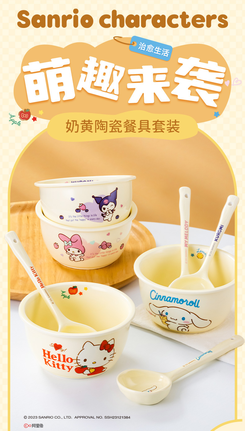헬로 키티 요거트 그릇 세라믹 식기 크림 스타일 쌀 그릇 플레이트 창조적 인 귀여운 소녀 하트 Ins 스타일 가구스토어 가기
