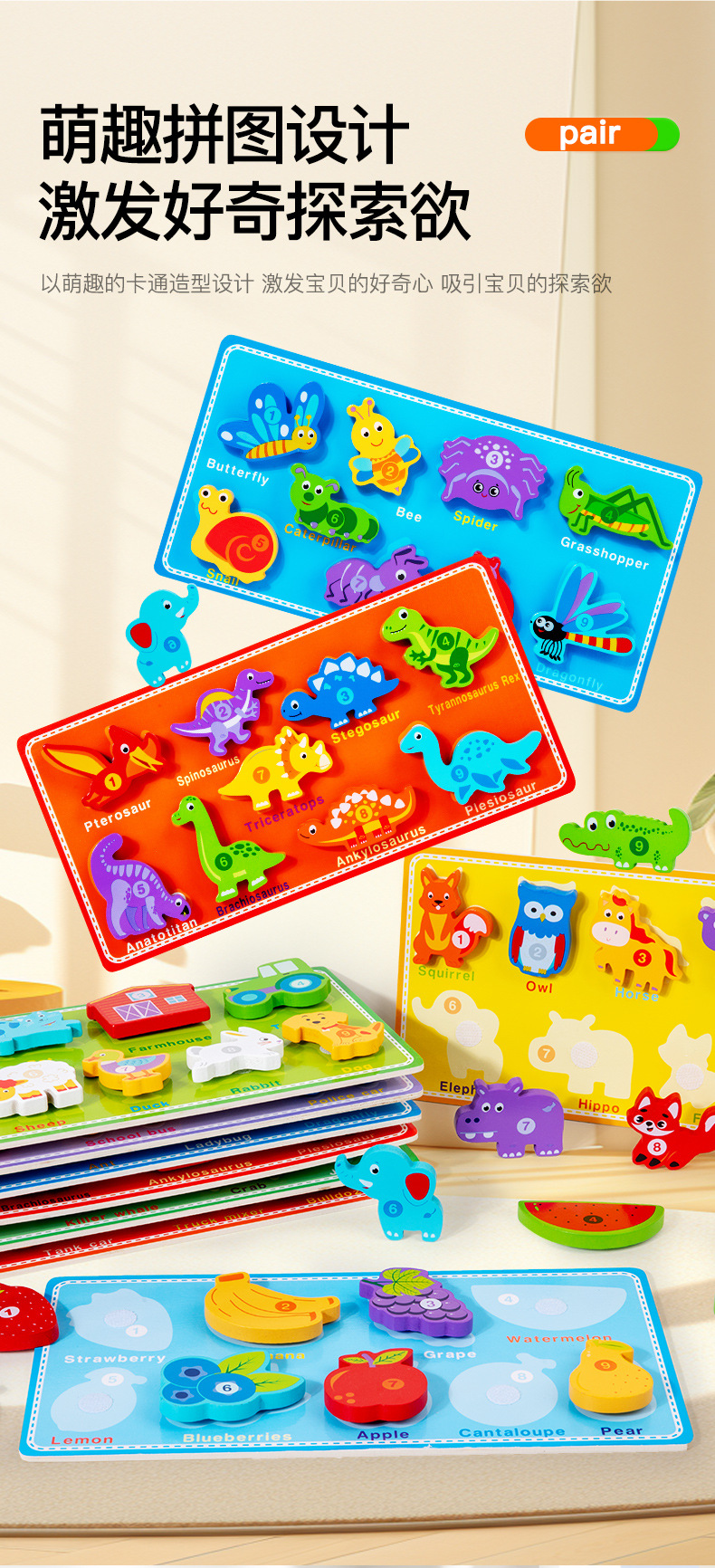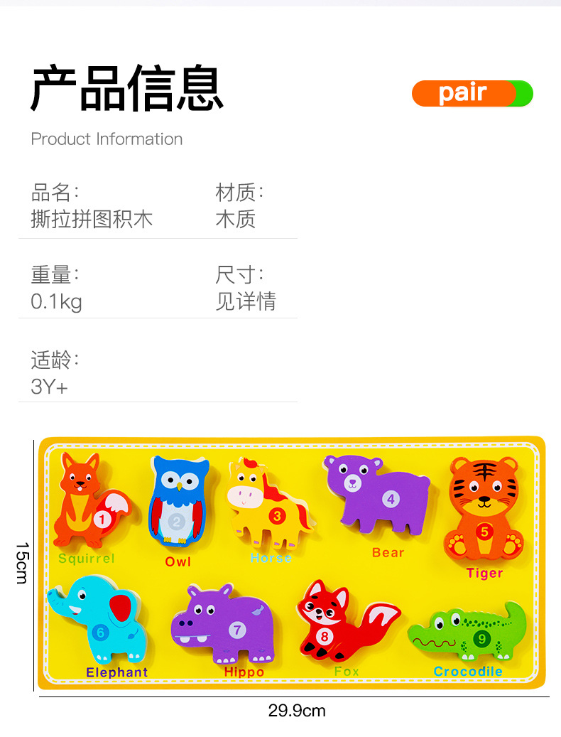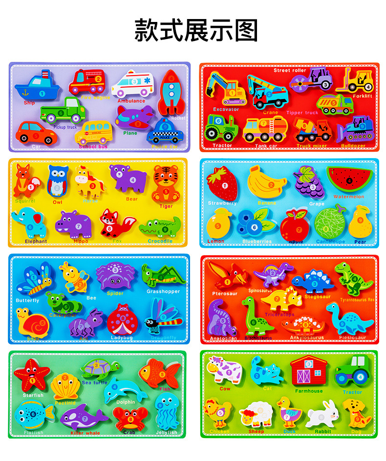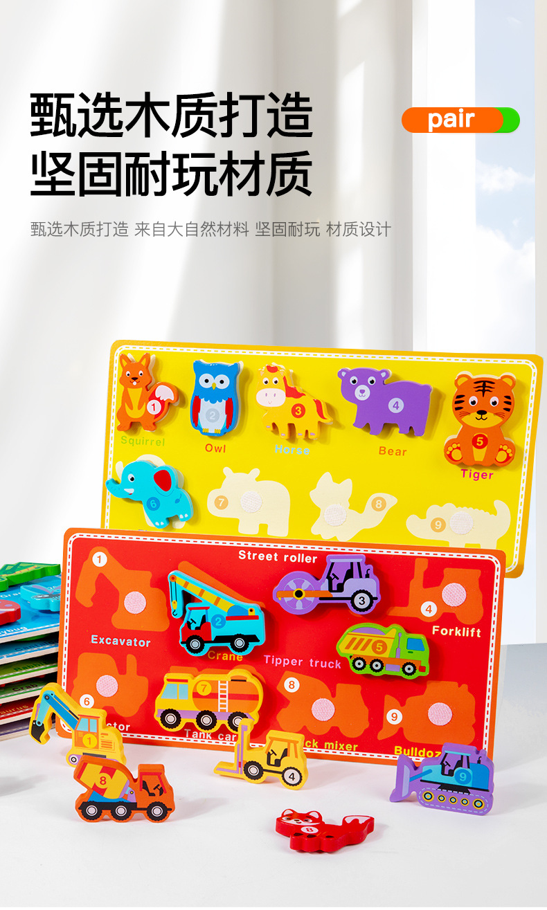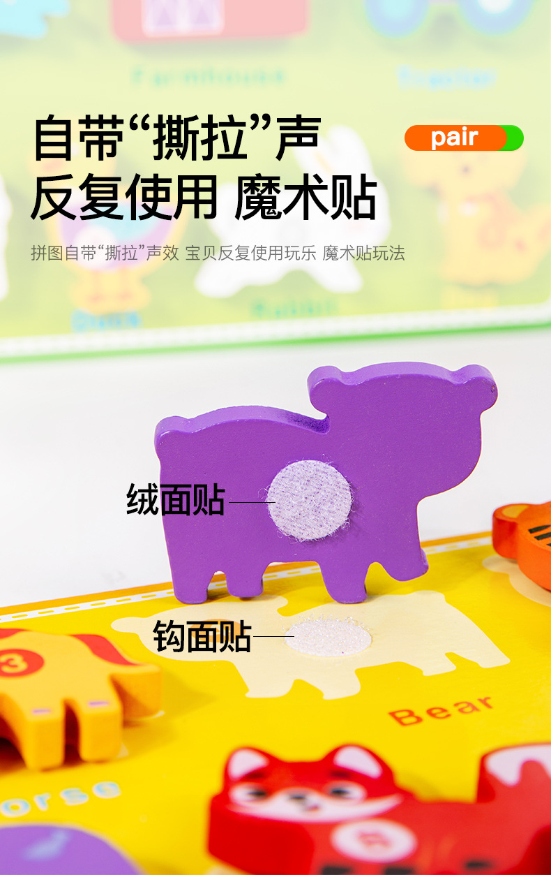 국경 새로운 나무 어린이 유아 교육 교육 창조적 인 벨크로 3 차원 퍼즐 빌딩 블록 자동차 동물 퍼즐