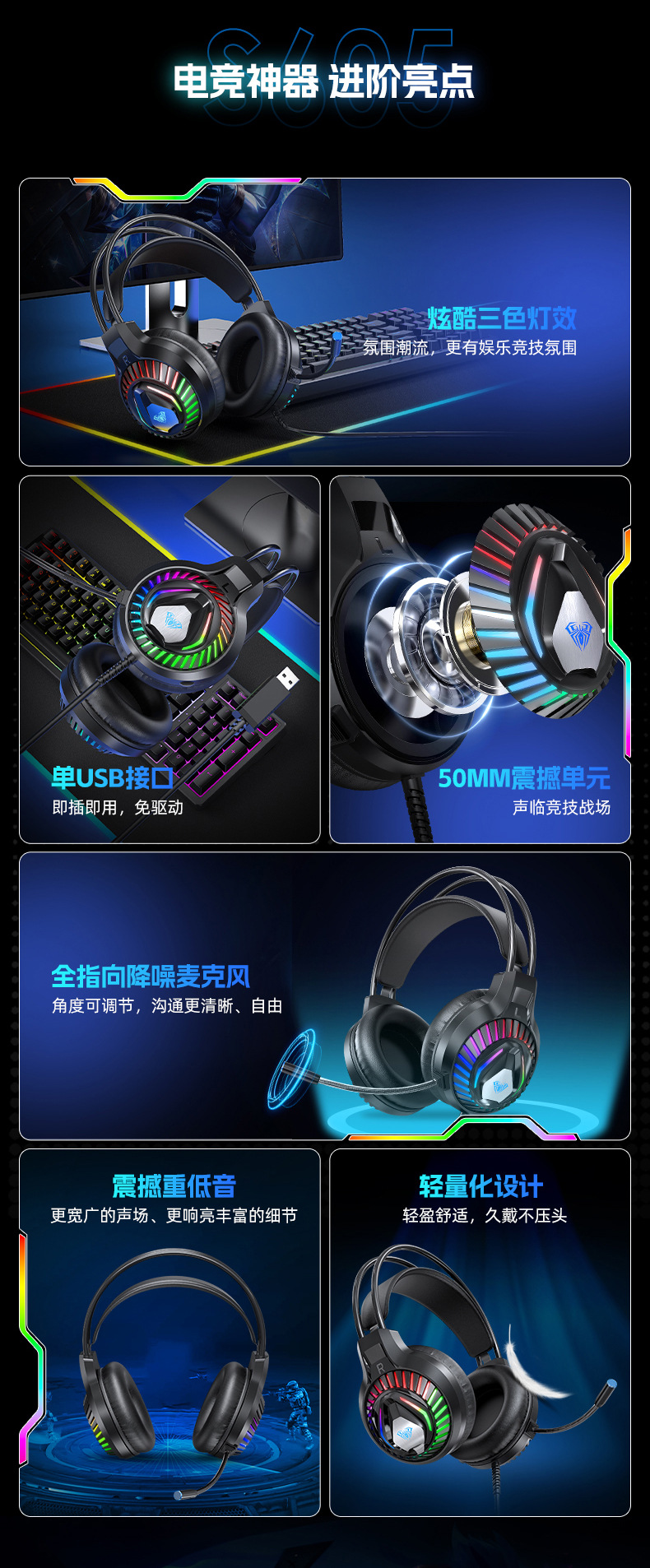 AULA/Tarantula S605 헤드셋 게임 헤드셋 전기 경쟁 USB7.1 노트북 컴퓨터 인터넷 카페 인터넷 카페 헤드셋