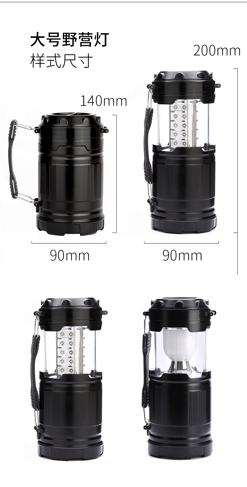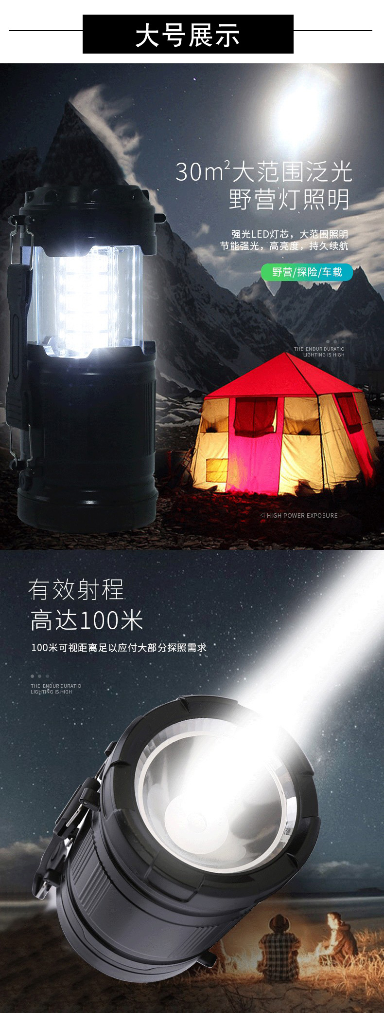 국경 간 30LED 망원경 캠핑 램프 랜턴 휴대용 캠프 텐트 램프 COB 야간 낚시 야외 조명 캠핑 램프