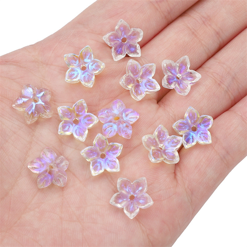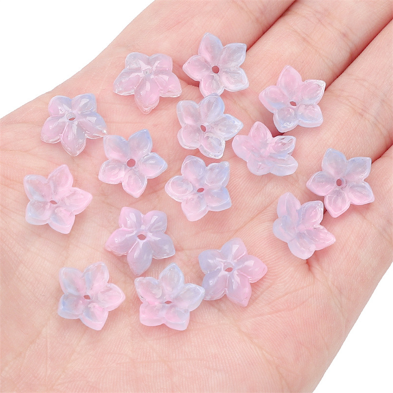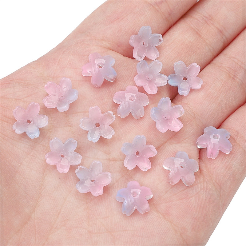 유리 그라디언트 뾰족한 꽃 구슬 유리 벚꽃 구슬 수제 DIY 팔찌 머리 장식 소재 보석 액세서리