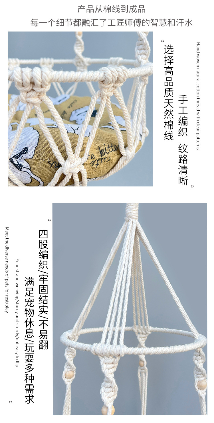 손으로 짠 교수형 고양이 둥지 애완 동물 그물 가방 매달려 고양이 바구니 보헤미안 스타일 고양이 둥지 해먹