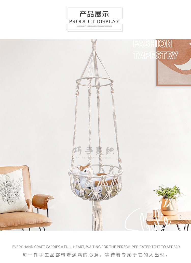 손으로 짠 교수형 고양이 둥지 애완 동물 그물 가방 매달려 고양이 바구니 보헤미안 스타일 고양이 둥지 해먹스토어 가기