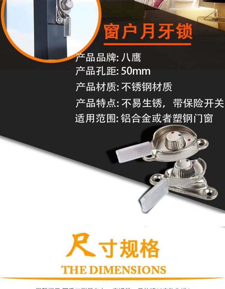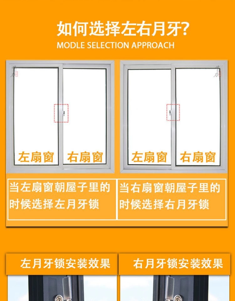 창 버클 창 잠금 플라스틱 강철 창 버클 번역 알루미늄 합금 도어 및 창 초승달 잠금 이동 도어 창 도난 방지 슬라이딩 도어 액세서리스토어 가기