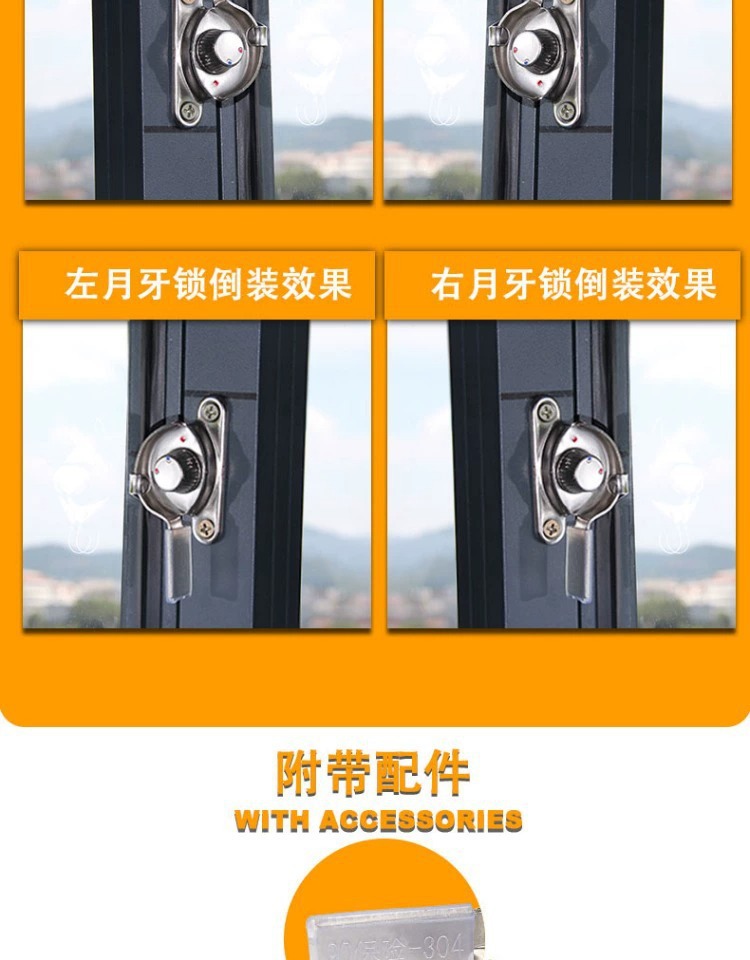 창 버클 창 잠금 플라스틱 강철 창 버클 번역 알루미늄 합금 도어 및 창 초승달 잠금 이동 도어 창 도난 방지 슬라이딩 도어 액세서리