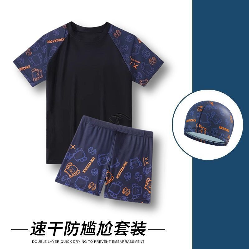 느슨한 플러스 사이즈 남성 수영복 여름 빠른 건조 보수 안티 당혹감 통기성 캐주얼 반팔 반바지 비치 수영 커버