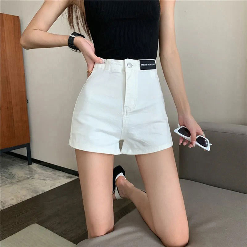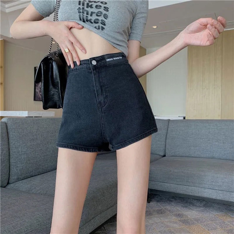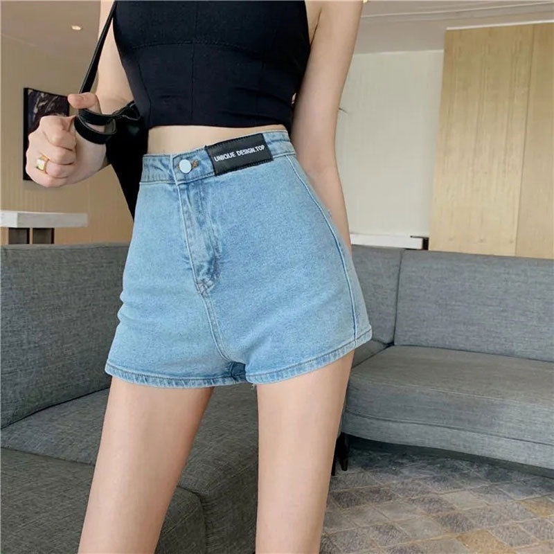 스트레치 데님 반바지 여성용 Ins 스타일 순수 스트레이트 튜브 라벨링 높은 허리베이스 슬림 핏 엉덩이 핫 바지