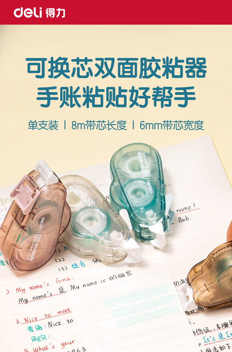델리 점착제 교체형 점착 테이프 학생용 수정 테이프 스타일 양면 테이프 수공예용 테이프