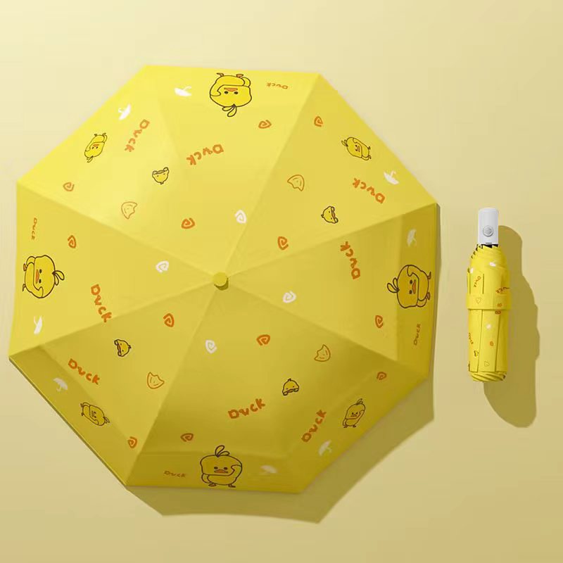 비는 만화 태양 우산을 즐긴다 노란 오리 Ins 맑음 비 이중 사용 어린이 우산 선 스크린 태양 우산 수동 접는 우산