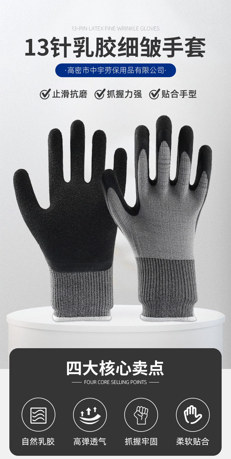 13 핀 라텍스 미세 주름 내마모성 노동 보호 장갑 미끄럼 통기성 공장 보호 장갑 건설 현장 장갑스토어 가기