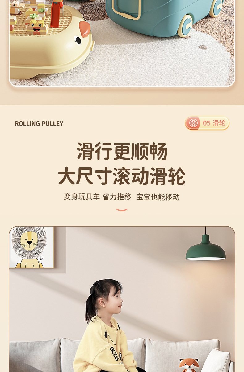어린이용 대용량 장난감 수납함, 가정용 바퀴 달린 수납함, 옷, 간식 정리함, 잡화 수납함, 카트