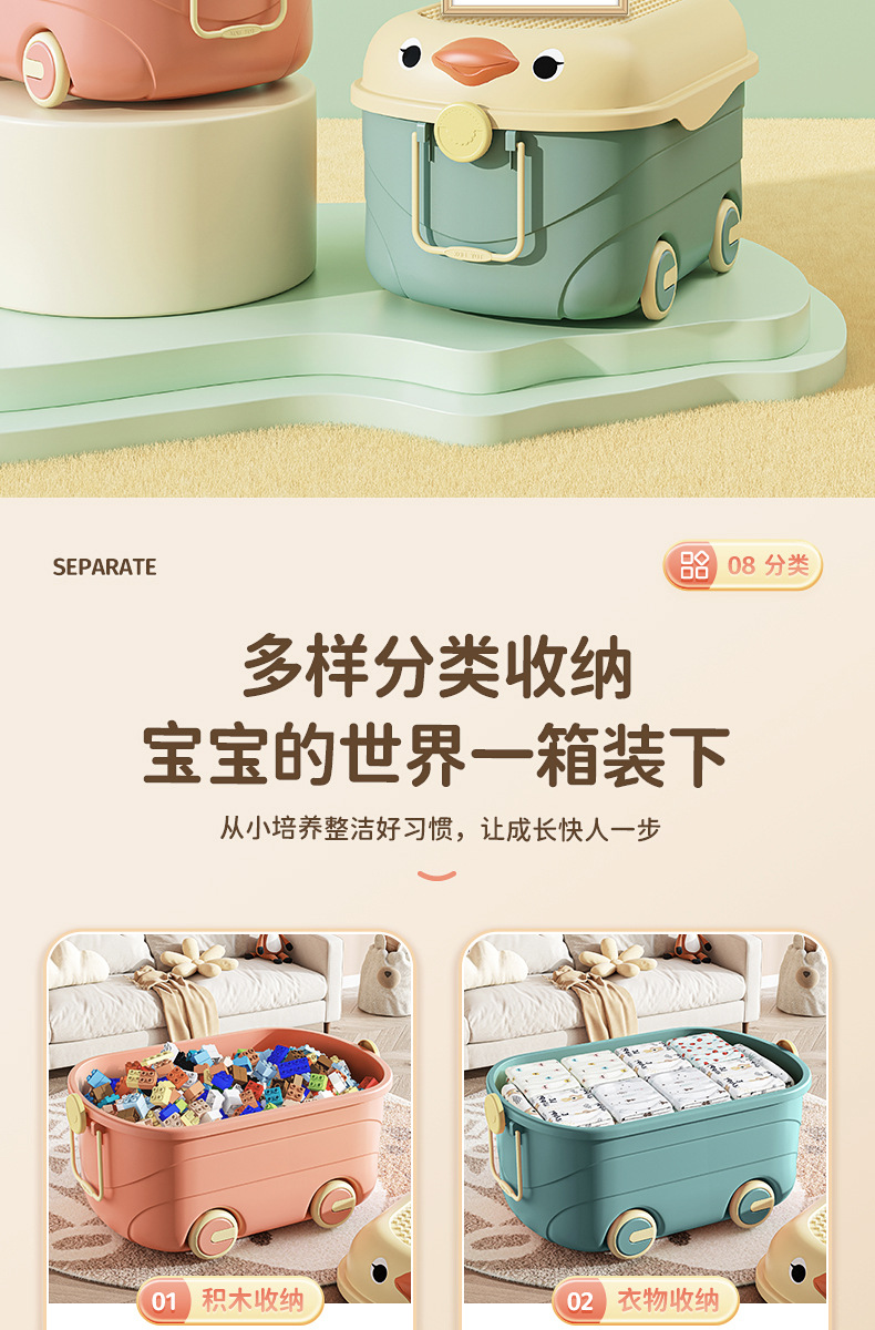 어린이용 대용량 장난감 수납함, 가정용 바퀴 달린 수납함, 옷, 간식 정리함, 잡화 수납함, 카트스토어 가기