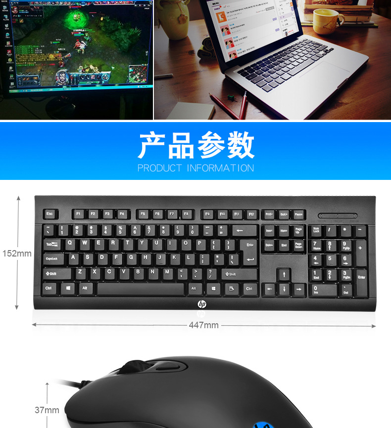 Huipu KM100 사무실 키보드 유선 키보드 마우스 세트 데스크탑 노트북 게임 사무실 노동자