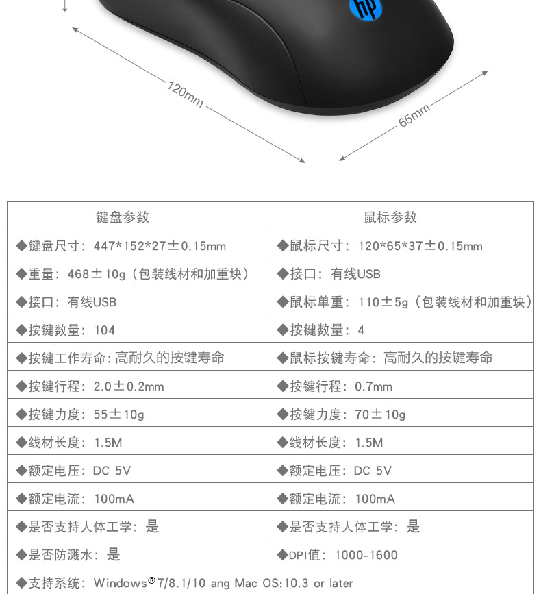 • HP KM300F 야광 키보드 및 마우스 세트 블랙