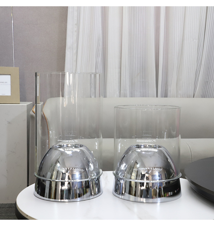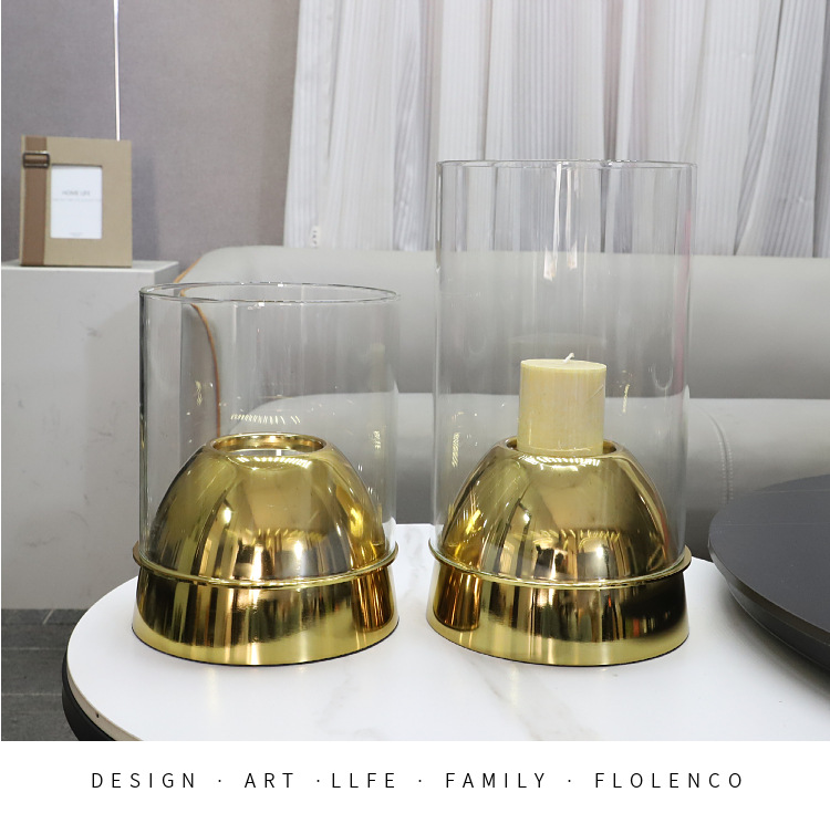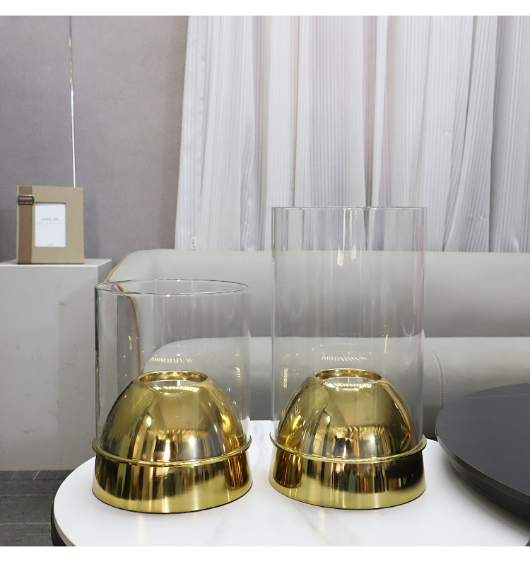현대 조명 럭셔리 기하학적 금속 유리 캔들 스틱 데스크탑 장식 거실 레스토랑 호텔 모델 룸 홈 액세서리스토어 가기