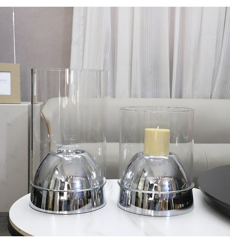 현대 조명 럭셔리 기하학적 금속 유리 캔들 스틱 데스크탑 장식 거실 레스토랑 호텔 모델 룸 홈 액세서리