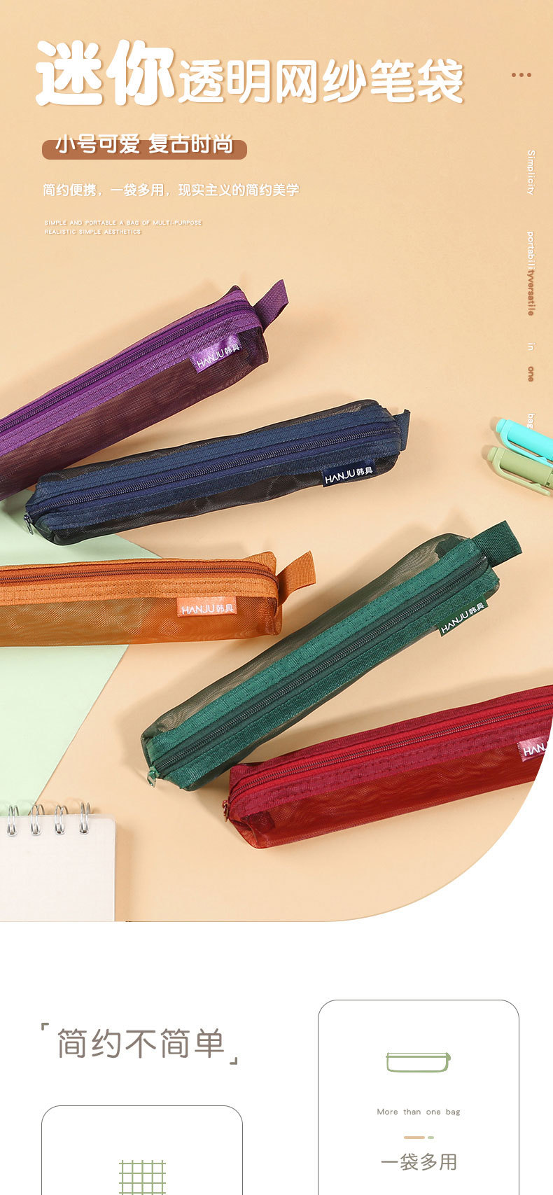 한국 빈티지 미니 메쉬 연필 가방 학생 시험 가방 룰러 연필 눈썹 펜 보관 가방 스몰 사이즈 문구 가방