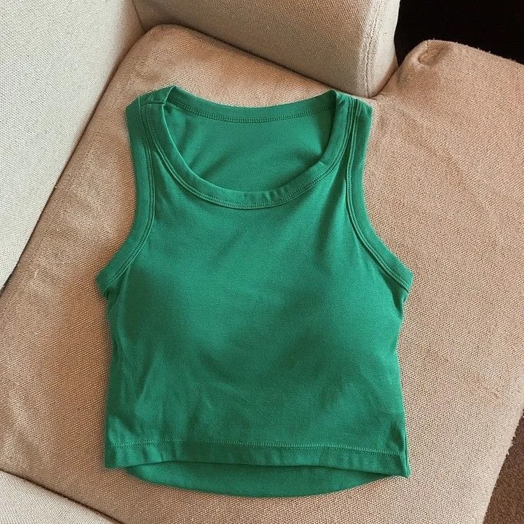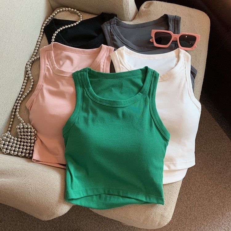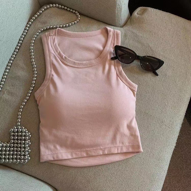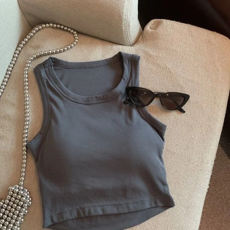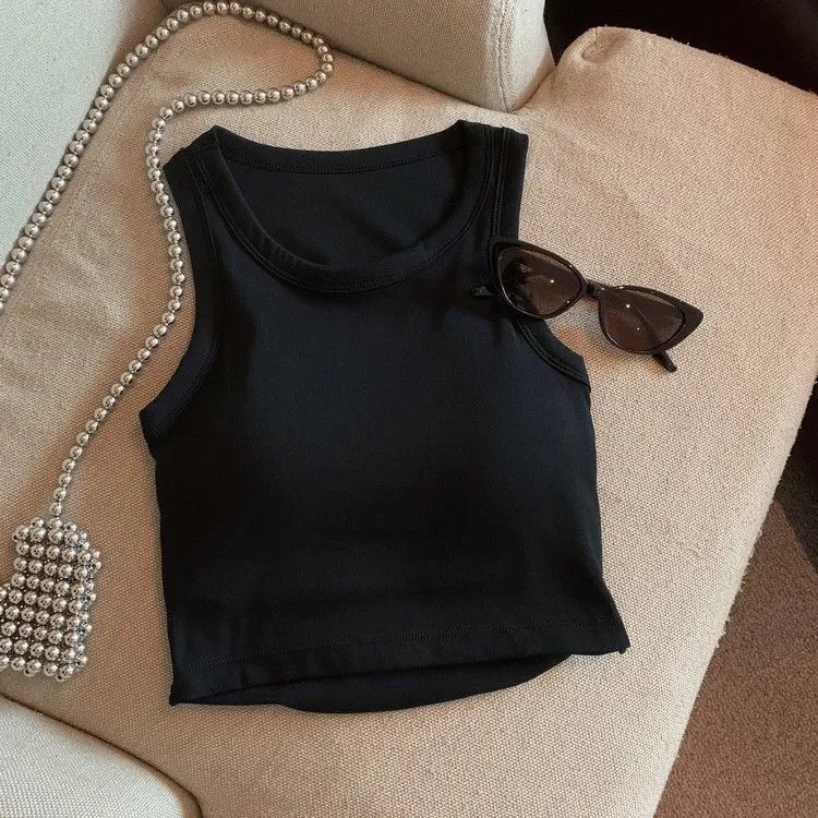 여아 여름 신상품 2025 한국 스타일 빈티지 백리스 슬리브리스 탑 라운드 넥 솔리드 컬러 기본 탑 무패드