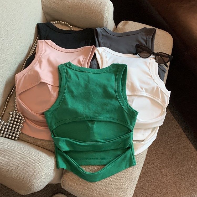 여아 여름 신상품 2025 한국 스타일 빈티지 백리스 슬리브리스 탑 라운드 넥 솔리드 컬러 기본 탑 무패드스토어 가기