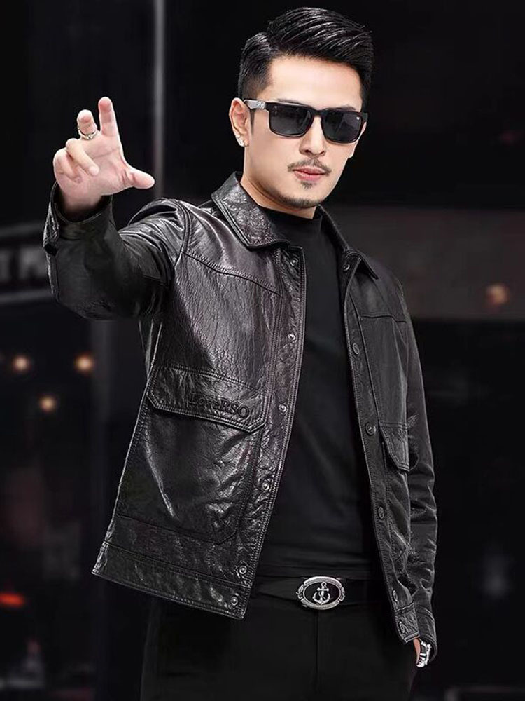 봄과 가을 새로운 Haining 가죽 자켓 남성 짧은 슬림 오토바이 가죽 자켓 남성 캐주얼 한국 스타일 자켓 남성 트렌디스토어 가기
