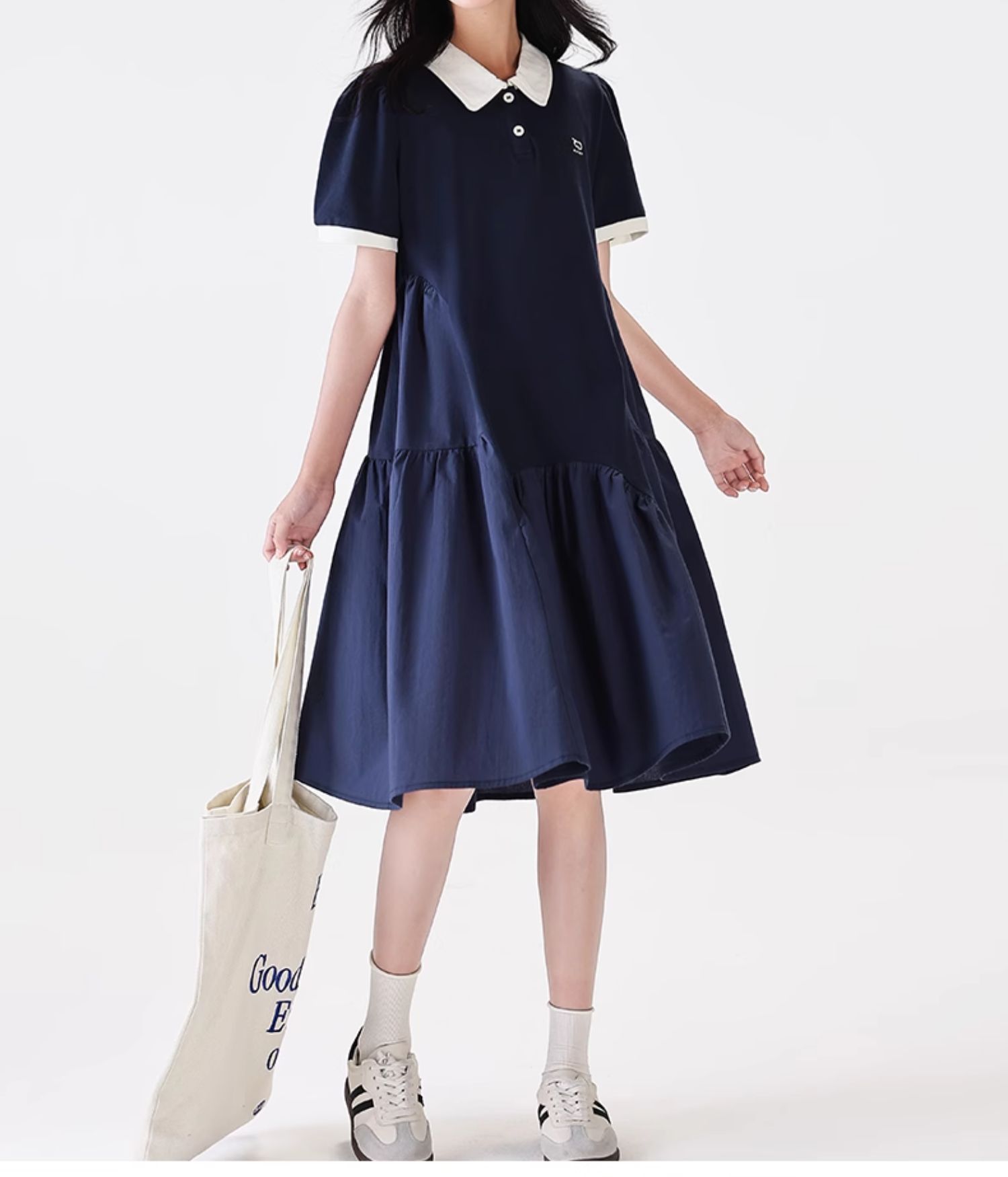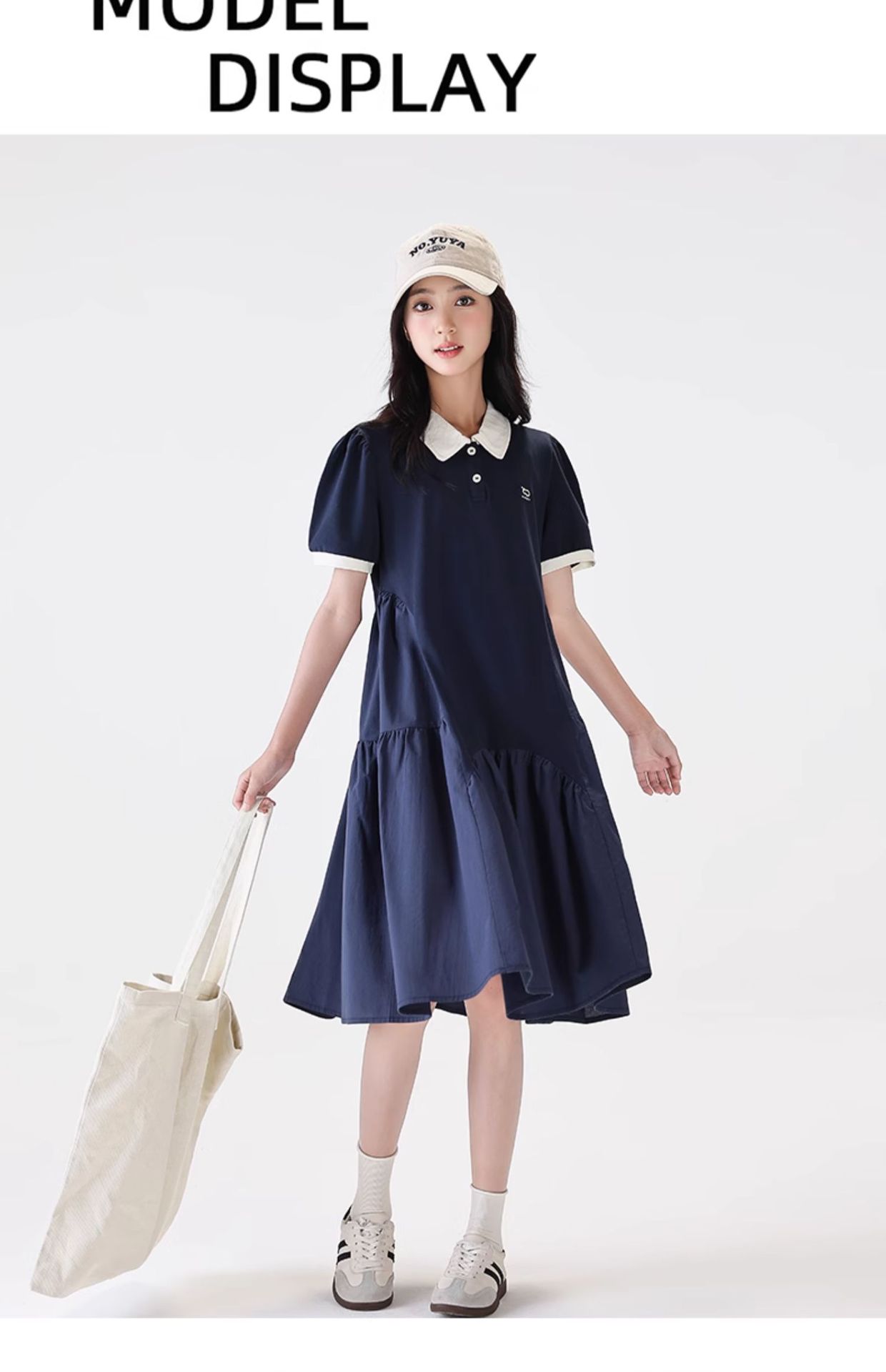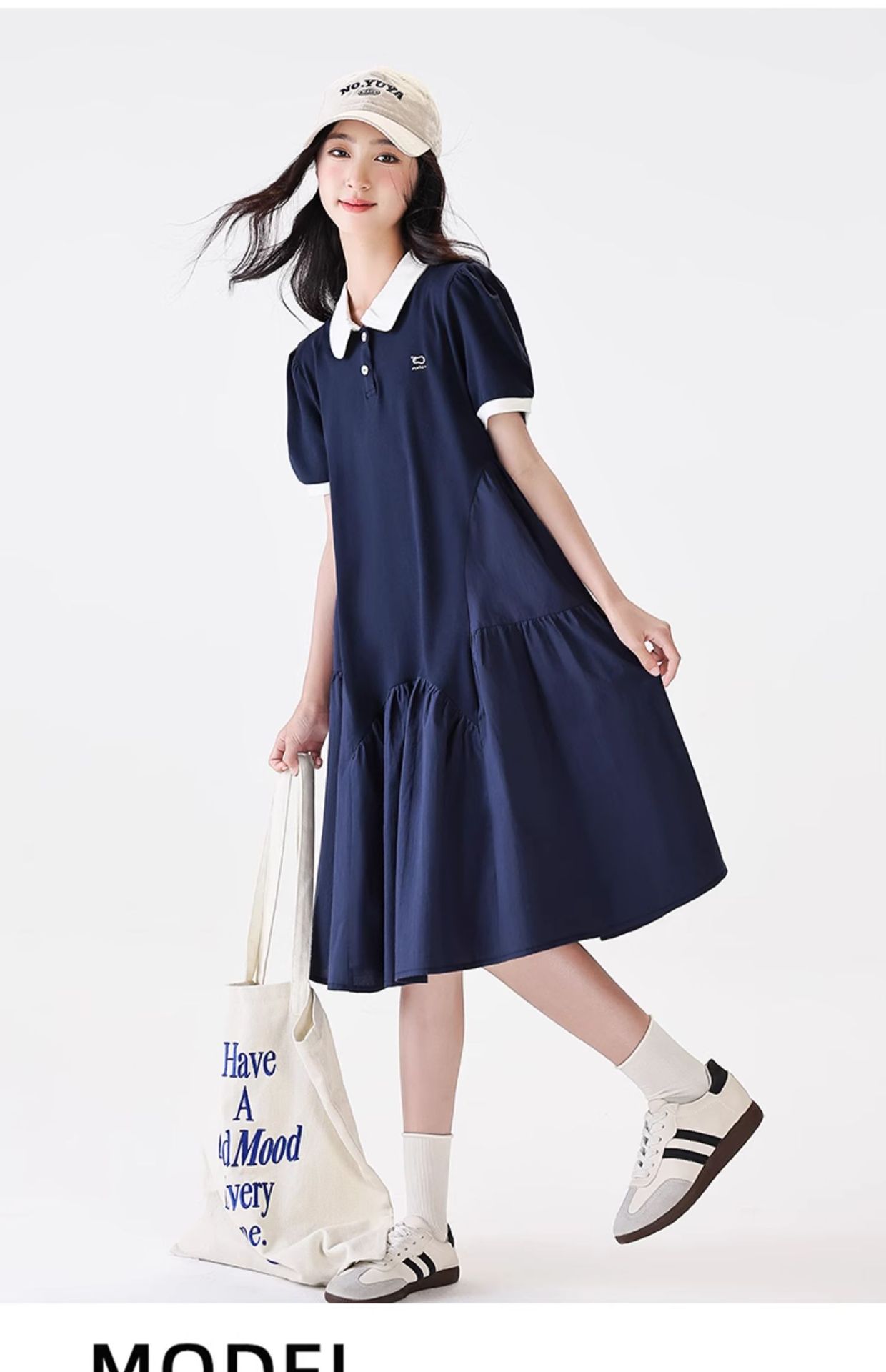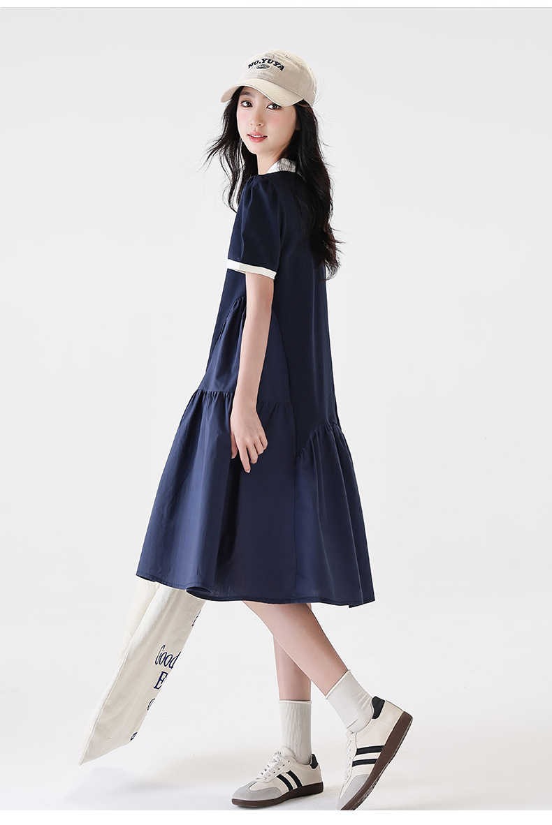 여자 드레스 여름 2025 여름 새로운 스타일 라펠 반팔 공주 스커트 어린이 유행 폴로 스커트스토어 가기