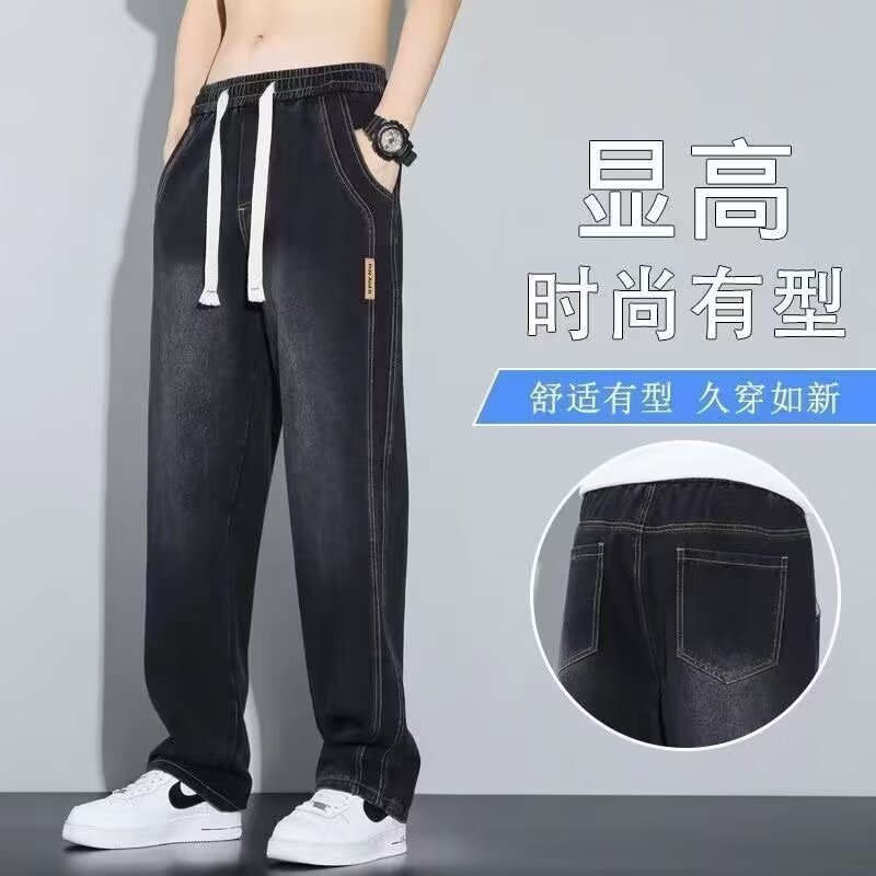 미국 와이드 레그 청바지 남성용 느슨한 스트레이트 봄과 가을 새 소년 탄성 캐주얼 크로스 보더 바지스토어 가기