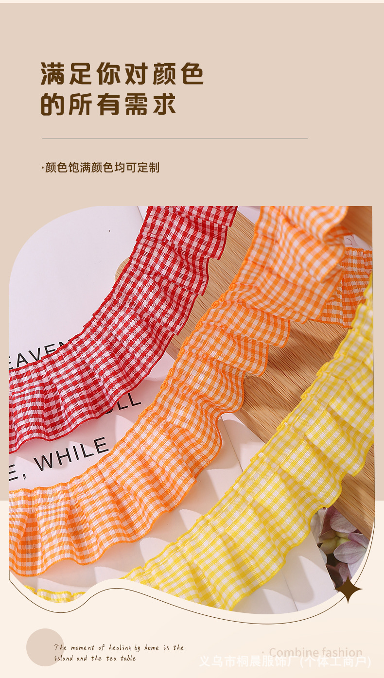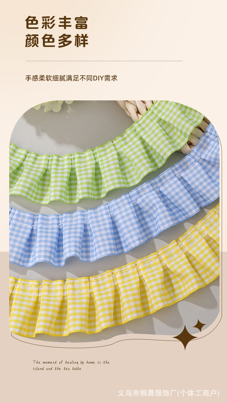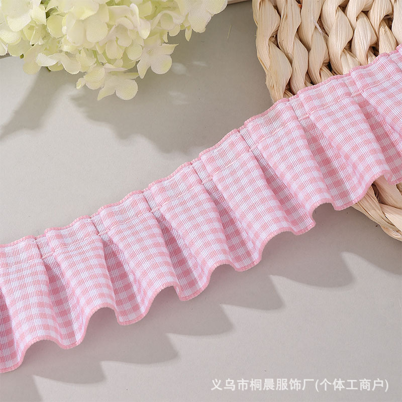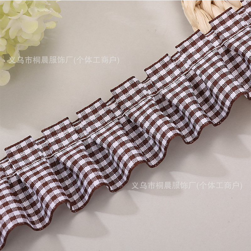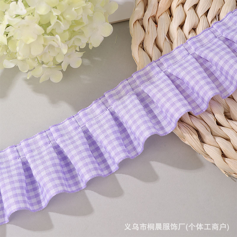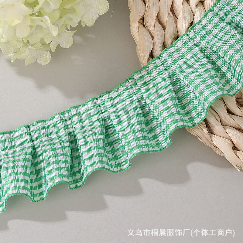 재고 4cm 격자 무늬 주름 레이스 수제 DIY 의류 커튼 액세서리 로터스 리프 할인 레이스 액세서리 도매