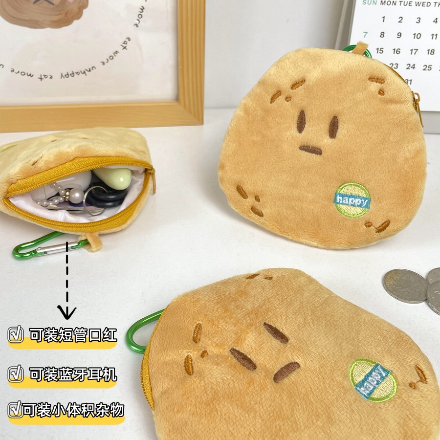 귀여운 미소 노란색 피부 감자 동전 지갑 만화 선샤인 감자 플러시 보관 가방 키 체인 가방 펜던트 도매