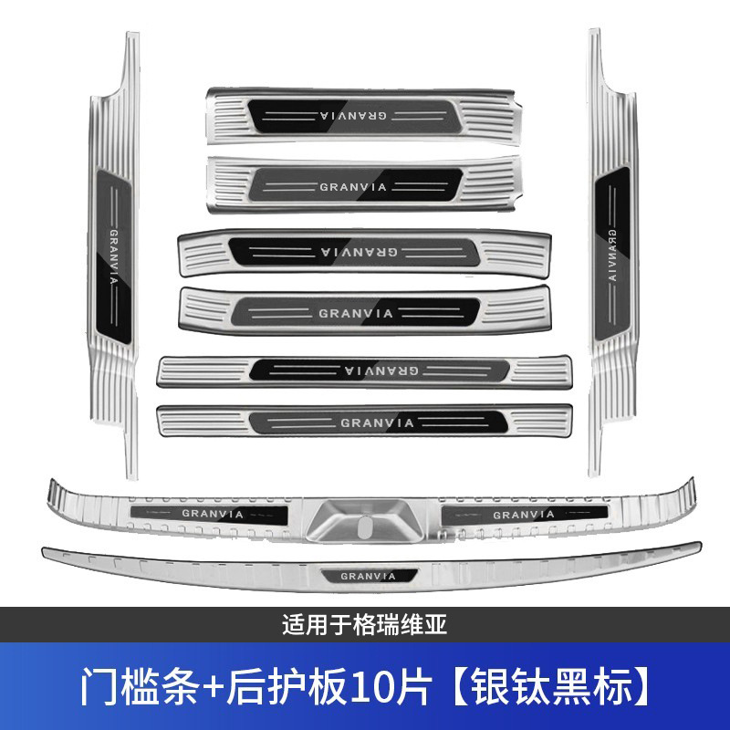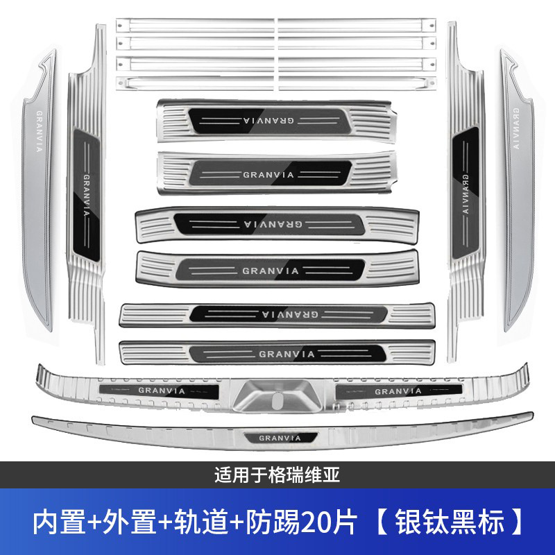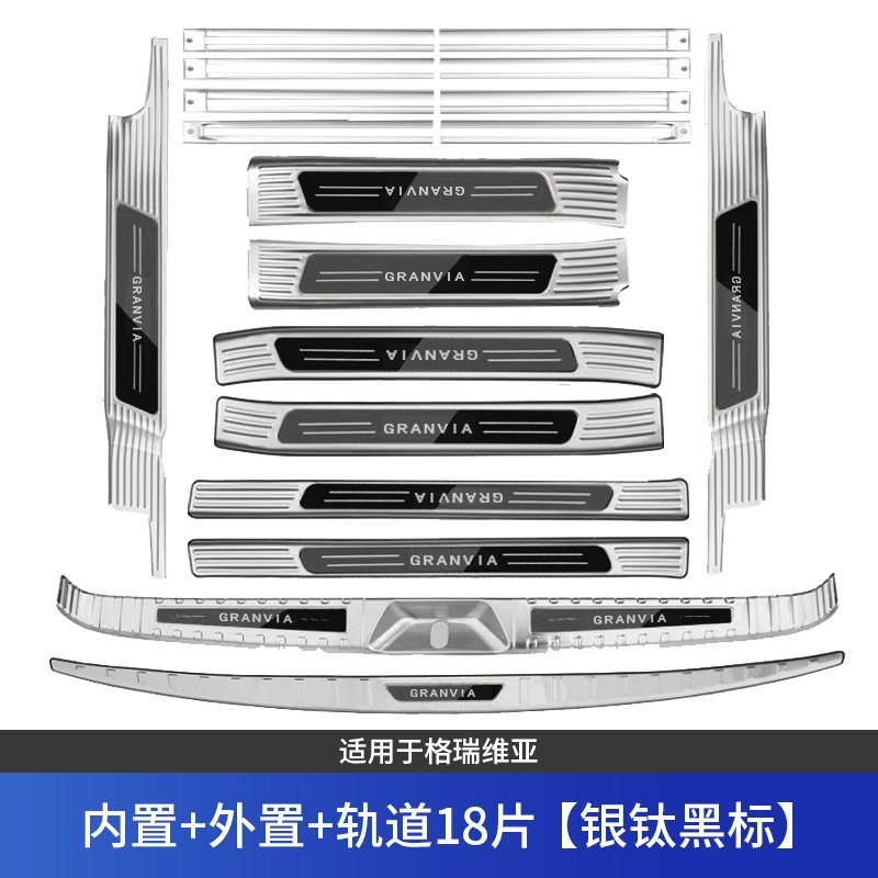 • 그레비아 임계값 + 후방 가드 + 도어 + 트랙 20개, 실버 및 블랙 라벨