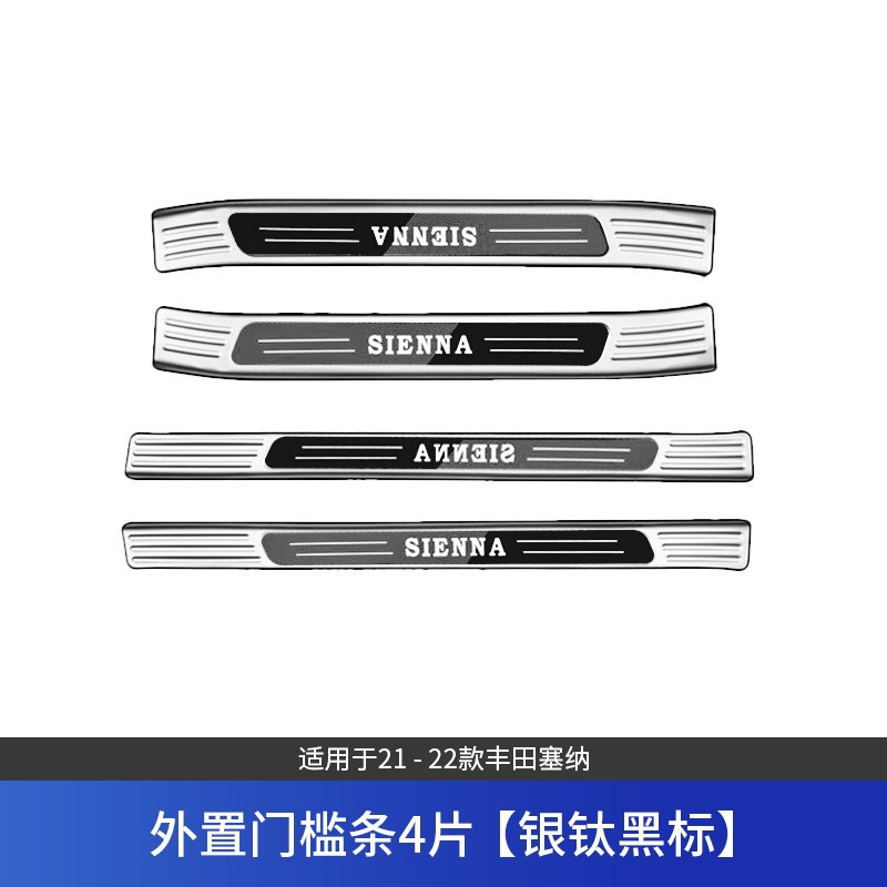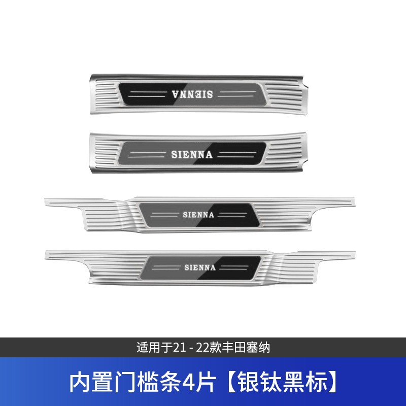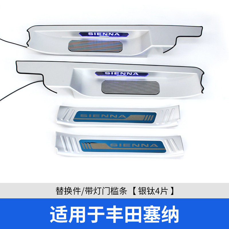 • 세나/그레비아 내장 임계값 4개, 실버 및 블루 라벨, LED 조명이 장착된 원래 차량에는 추가해야 합니다.