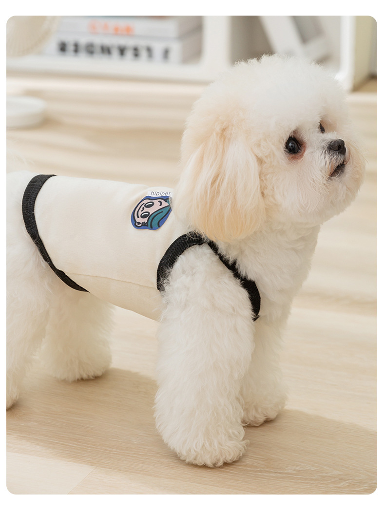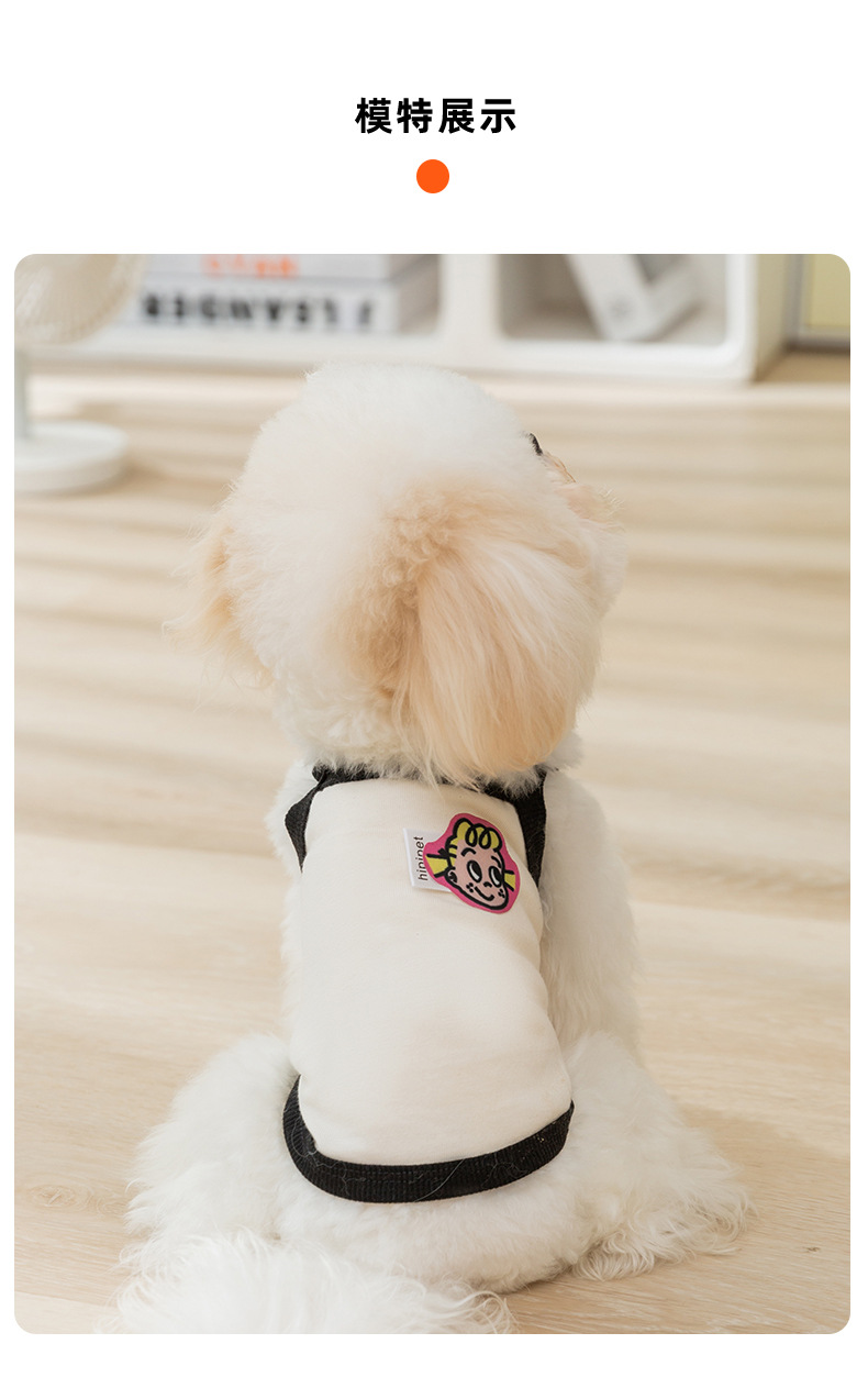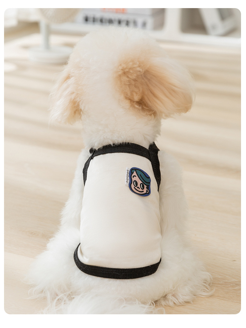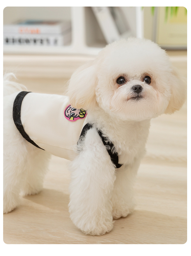 봄과 여름 개 간단한 검은 가장자리 소년과 소녀 커플 옷 슬링 고양이 두 다리 얇은 테디 애완 동물 옷