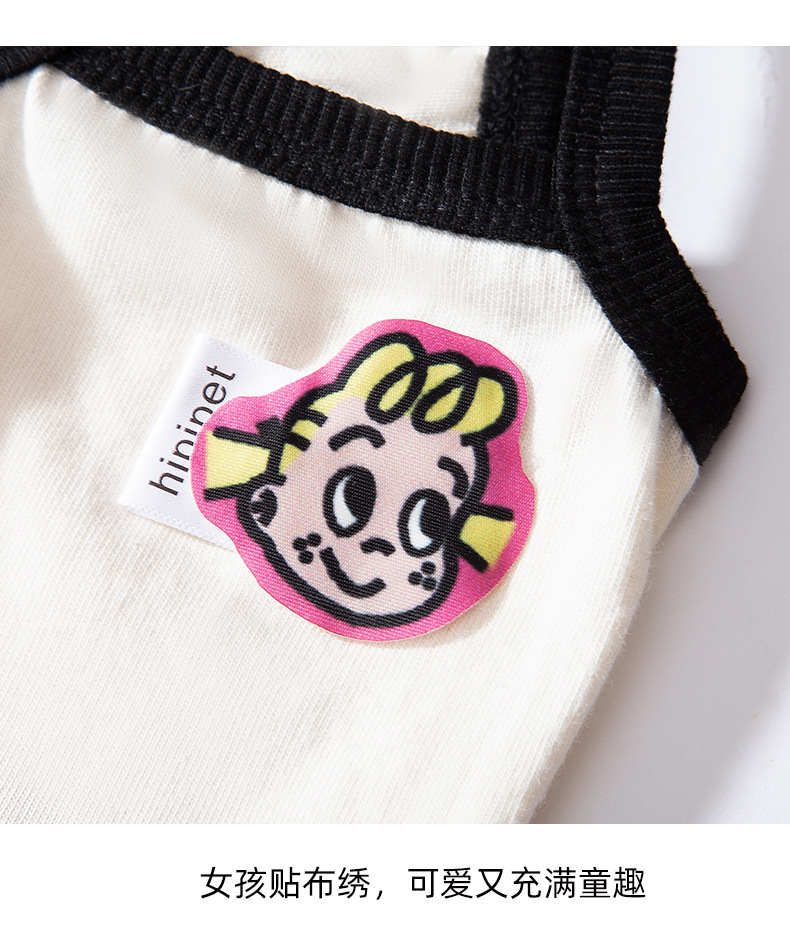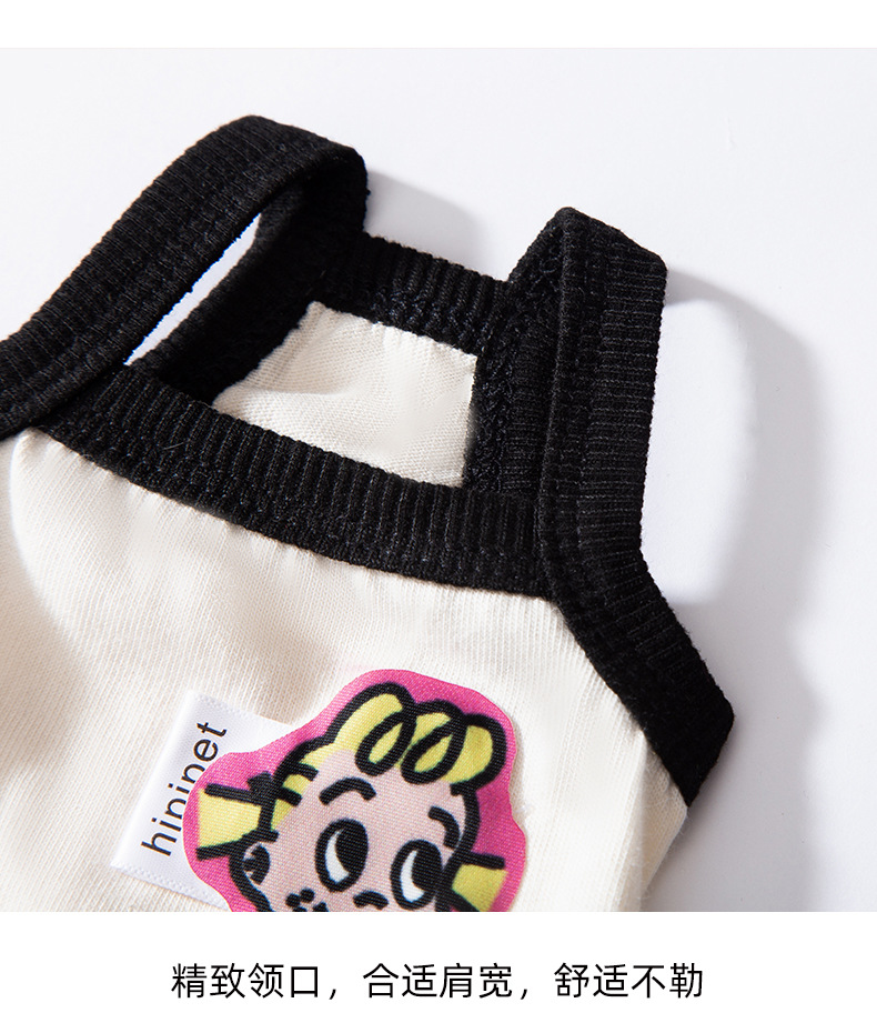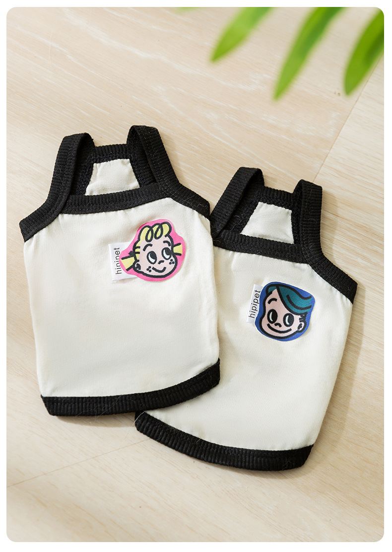봄과 여름 개 간단한 검은 가장자리 소년과 소녀 커플 옷 슬링 고양이 두 다리 얇은 테디 애완 동물 옷스토어 가기