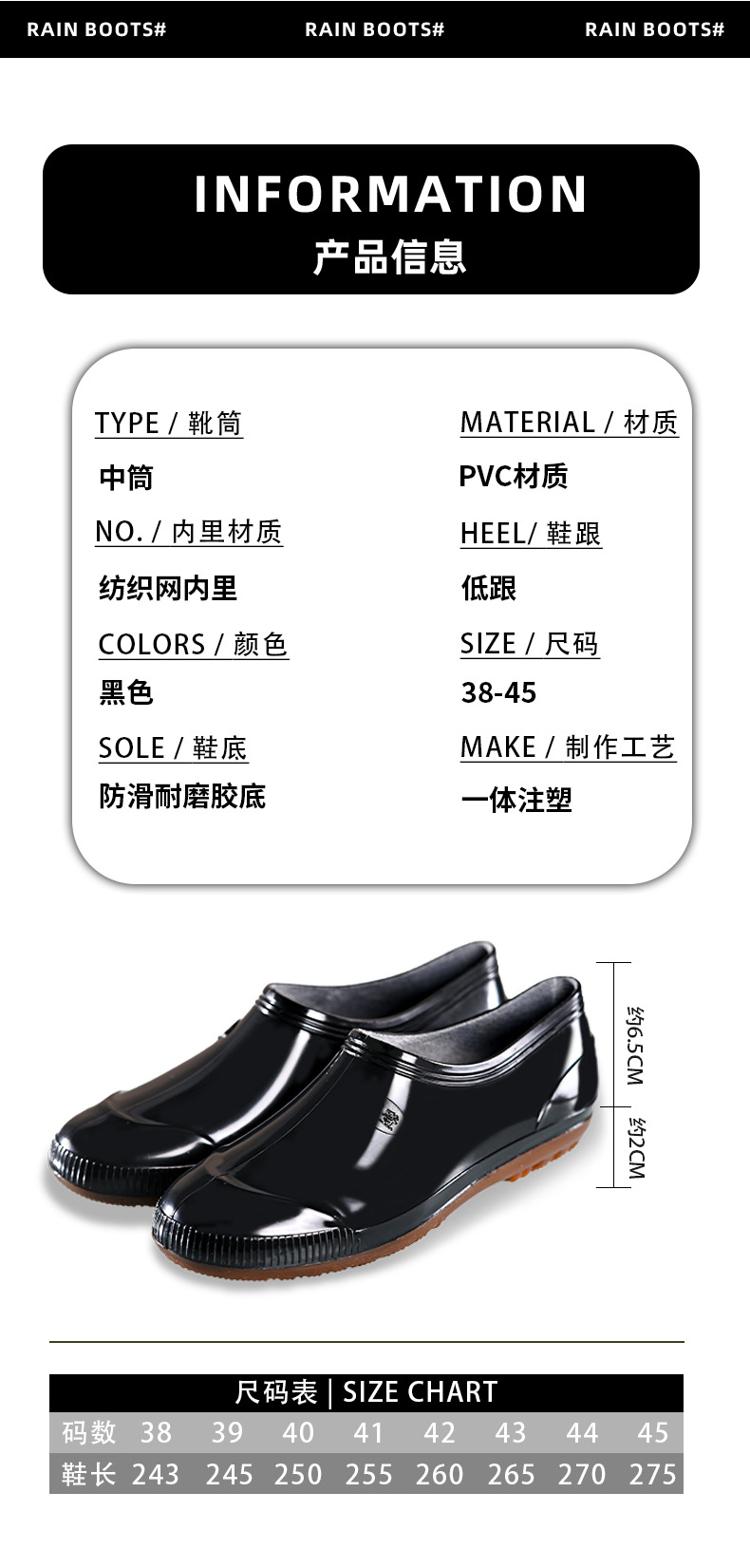 플라스틱 쇠고기 바닥 비 신발 남성 로우 탑 짧은 미끄럼 방지 주방 요리사 작업 신발 낚시 사이트 방수 신발