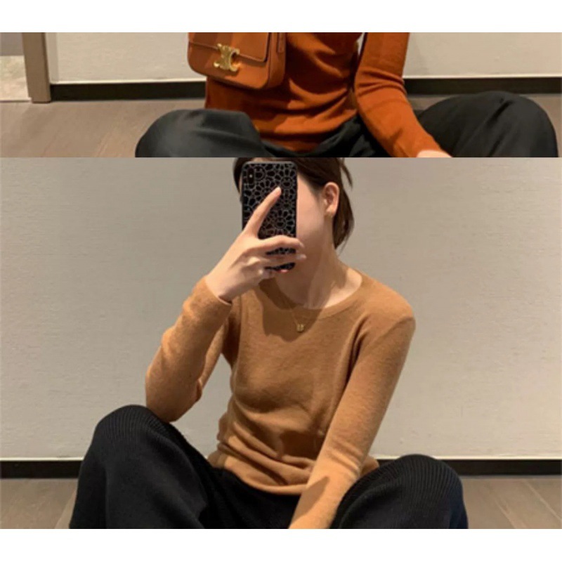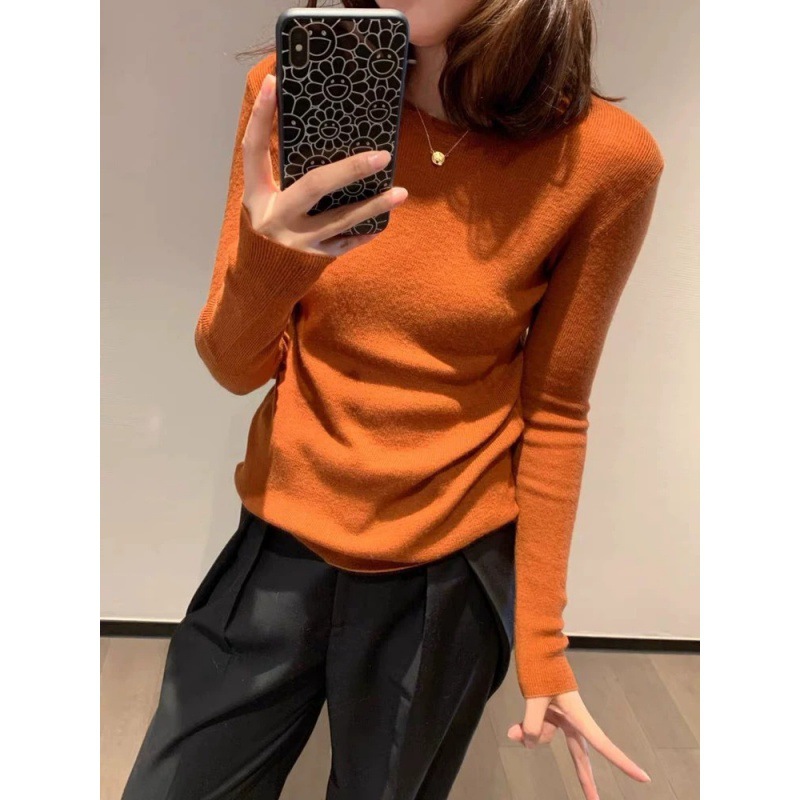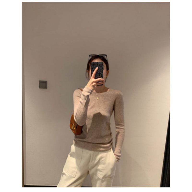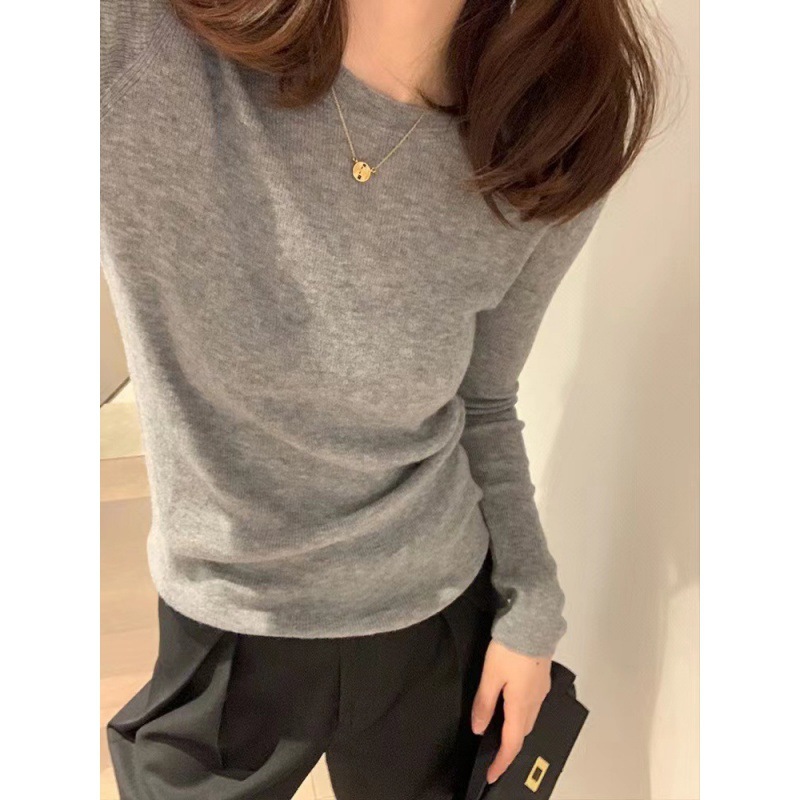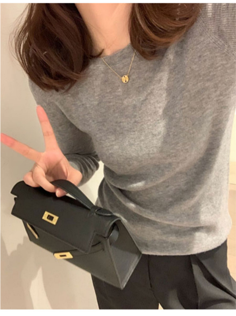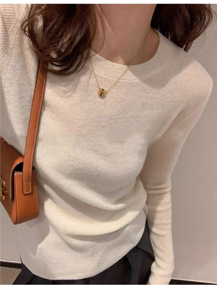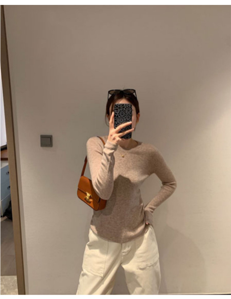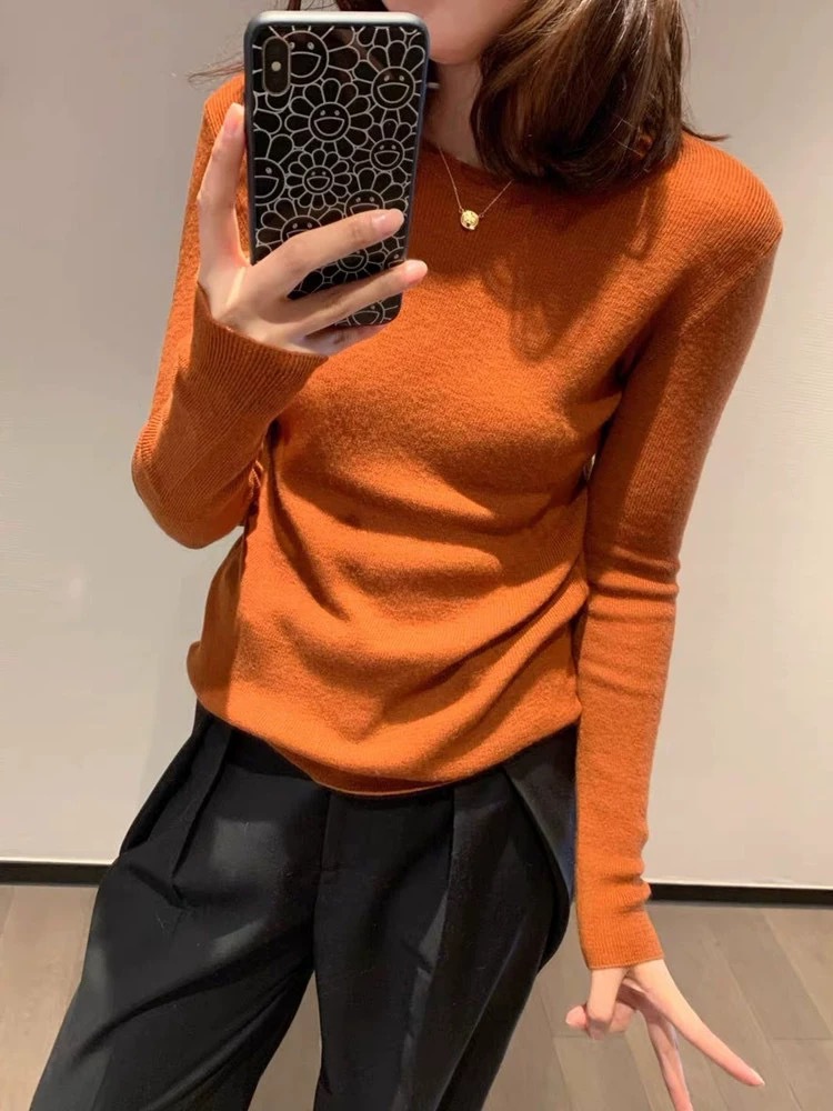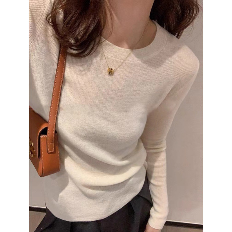 솔리드 컬러 슬림 어깨 울 내베이스 셔츠 여성용 봄과 가을 하이 엔드 소프트 왁스 니트 스웨터 슬림 핏 탑스토어 가기