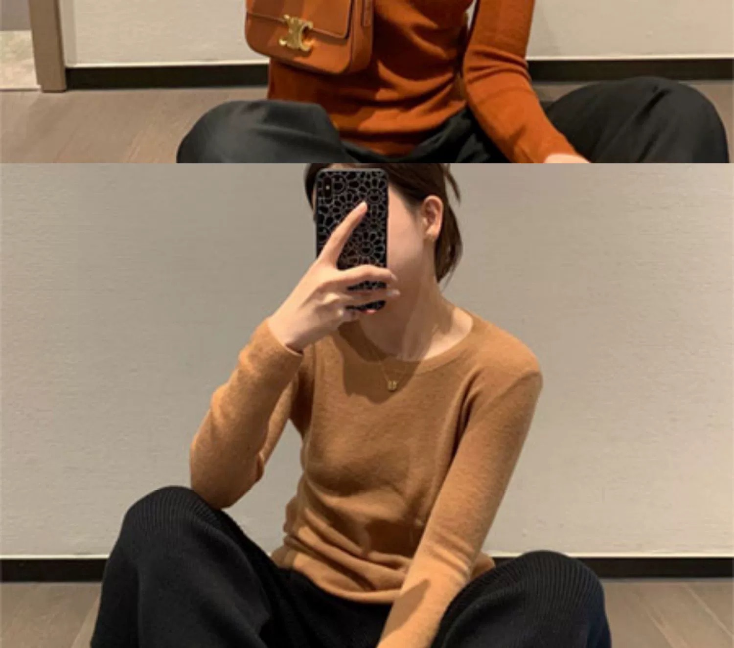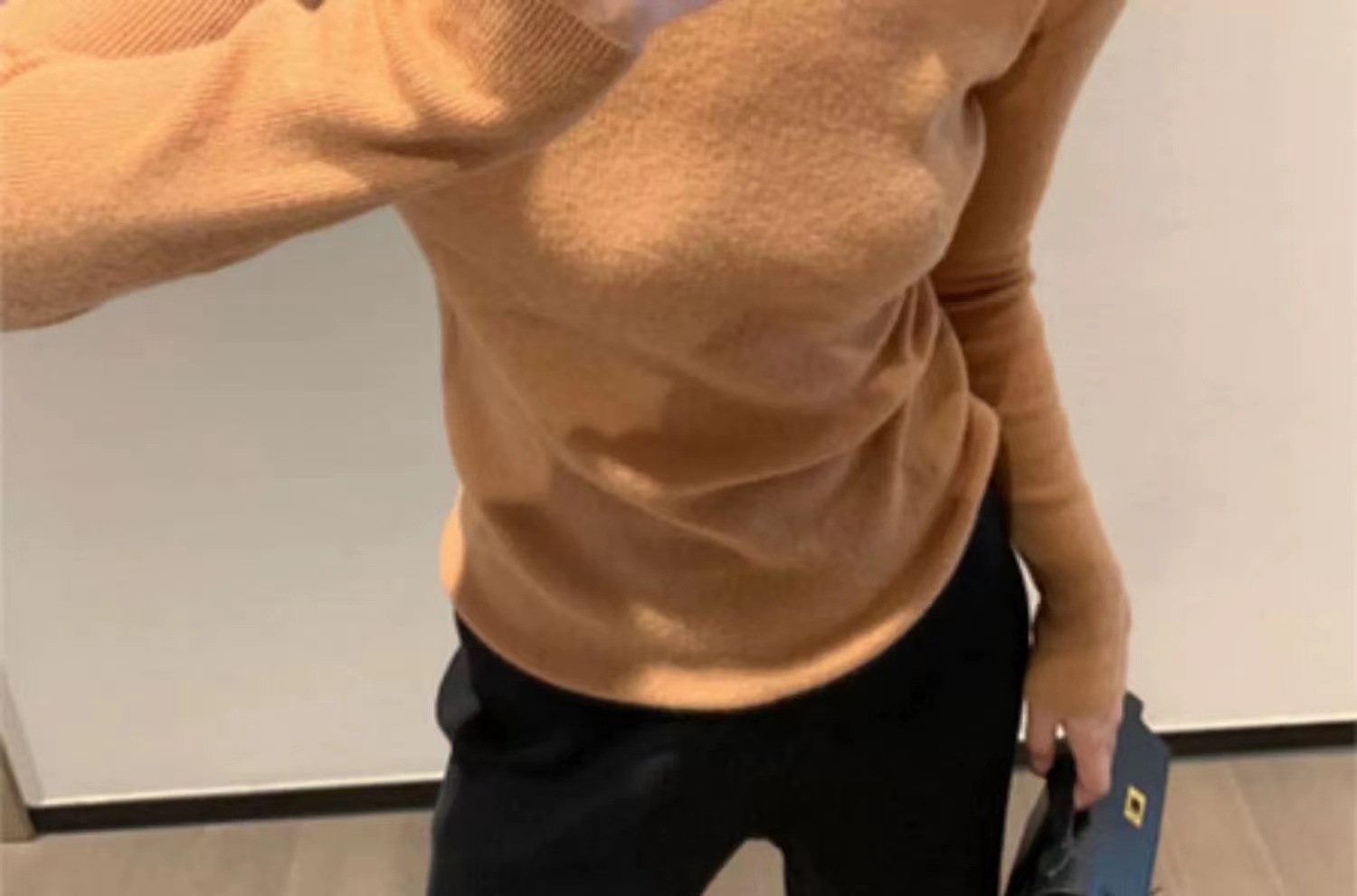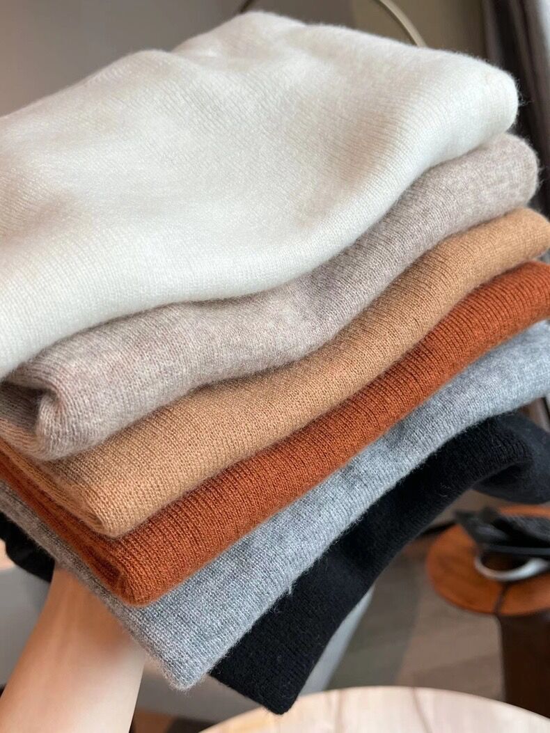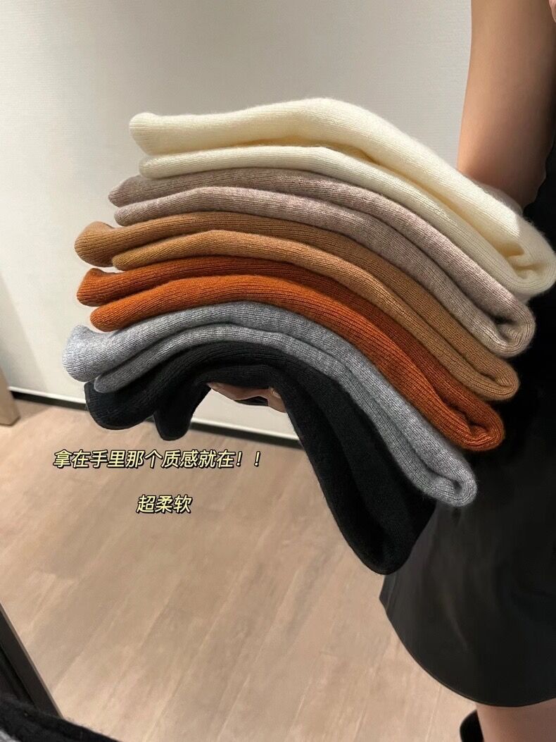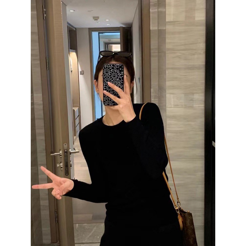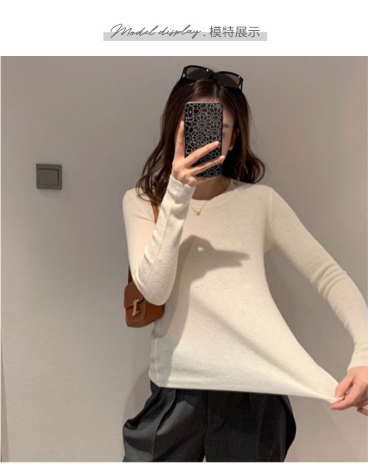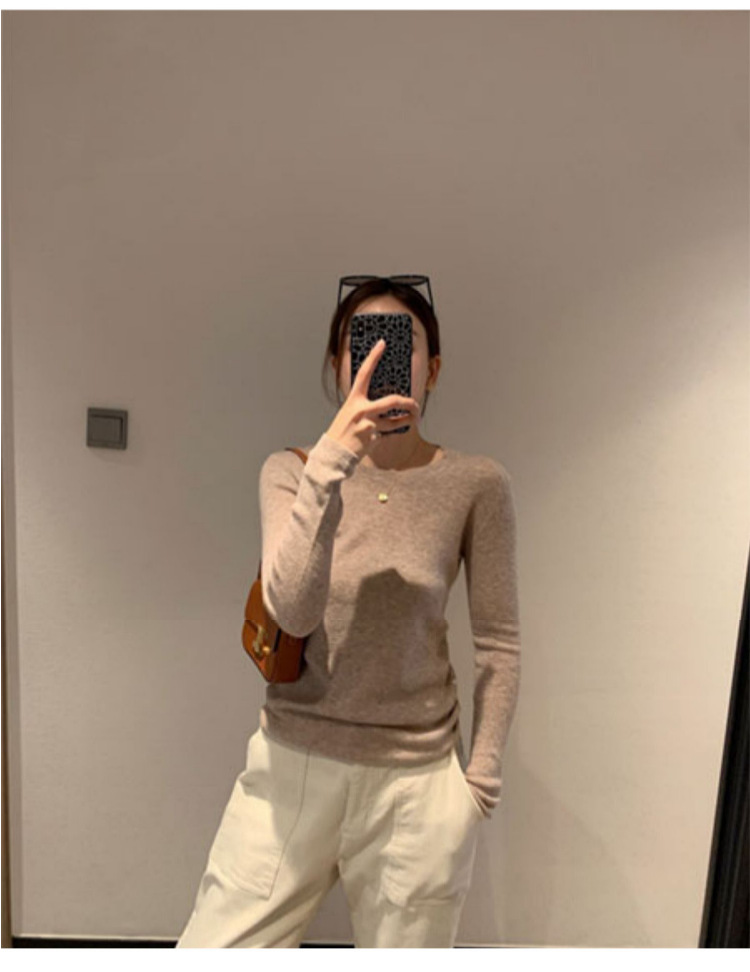솔리드 컬러 슬림 어깨 울 내베이스 셔츠 여성용 봄과 가을 하이 엔드 소프트 왁스 니트 스웨터 슬림 핏 탑스토어 가기