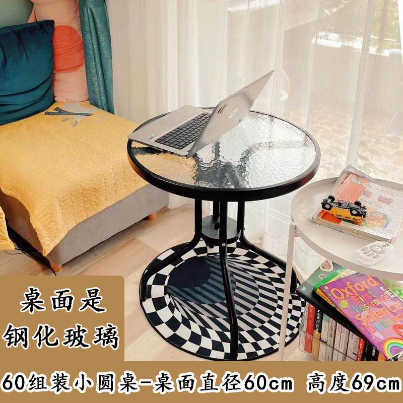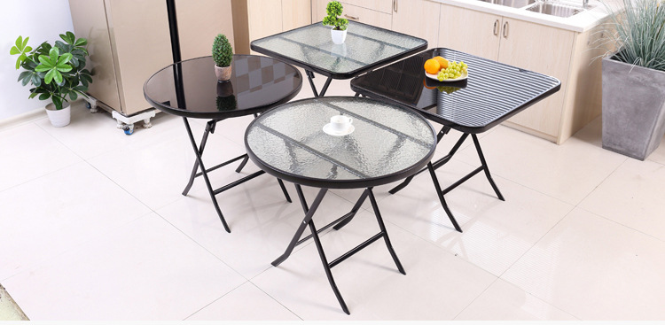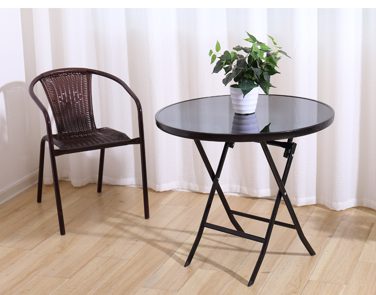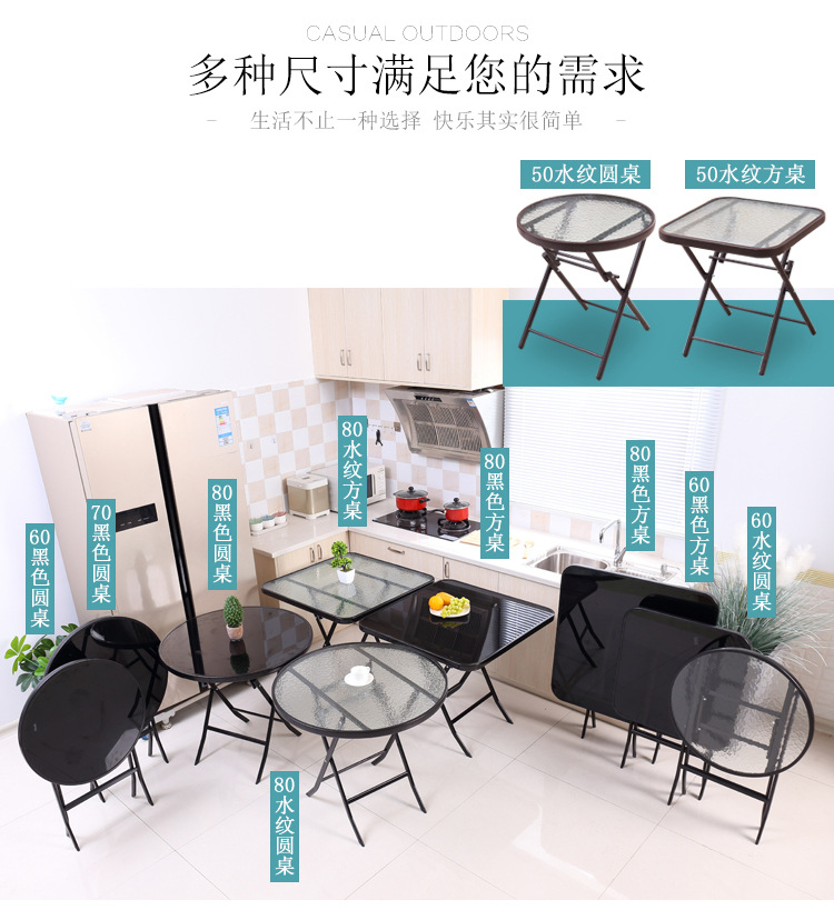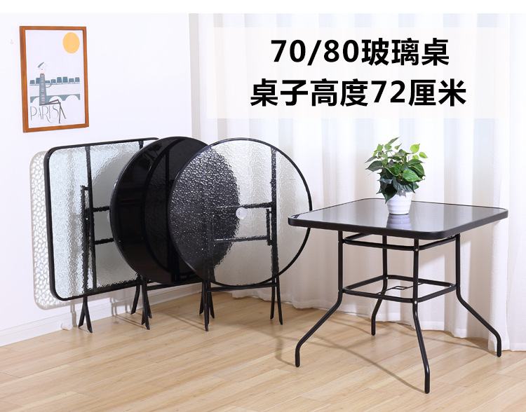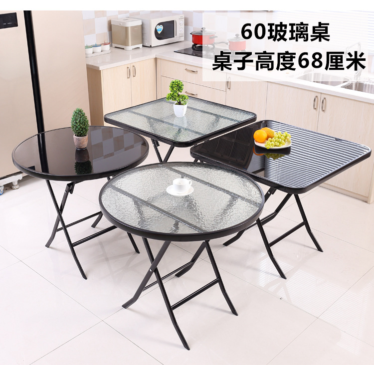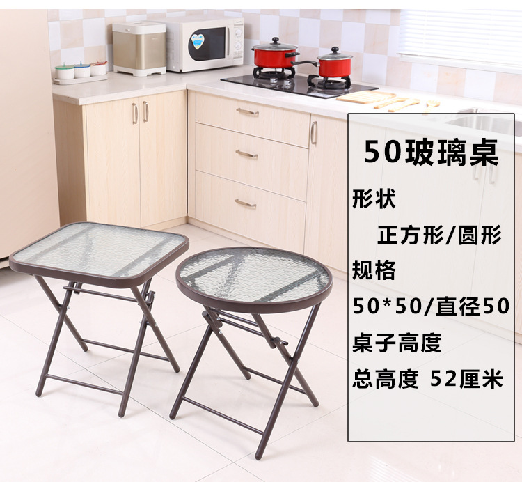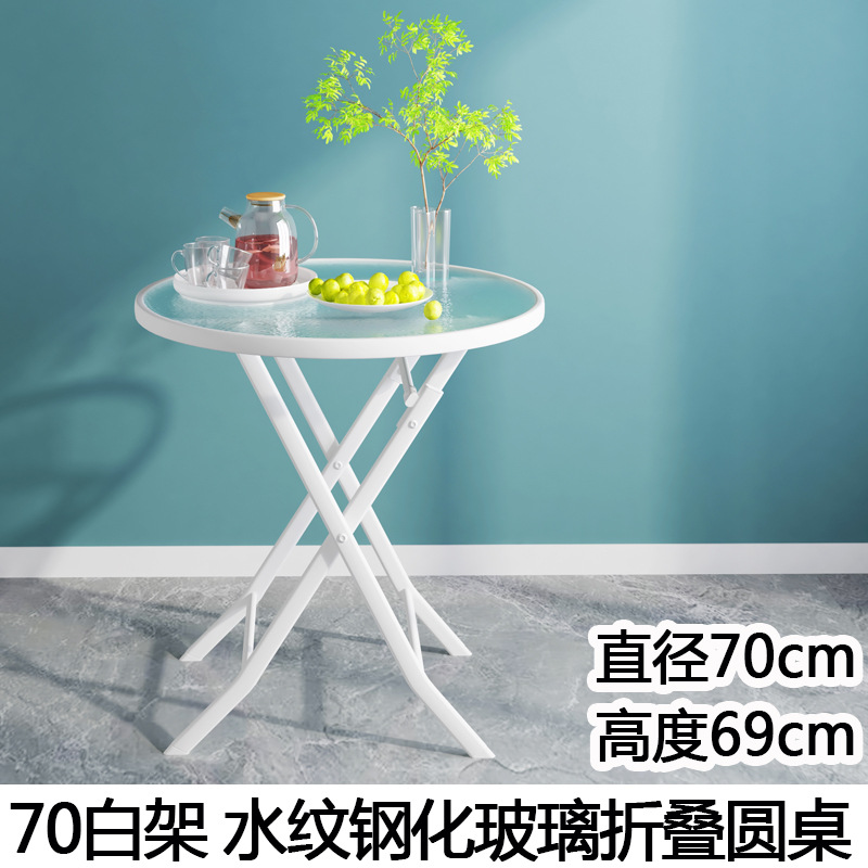 우유 차 가게 간단한 작은 라운드 테이블 발코니 가구 강화 유리 작은 라운드 테이블 야외 카드 새로운 접는 식탁