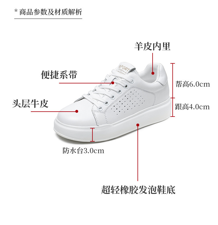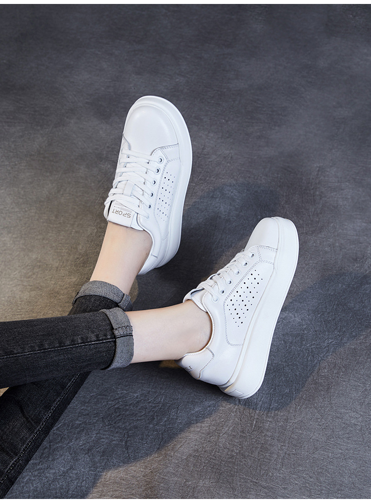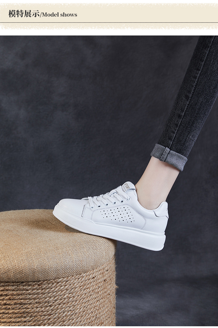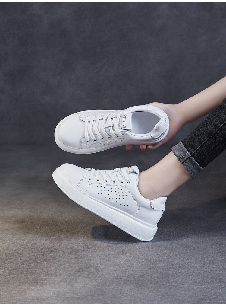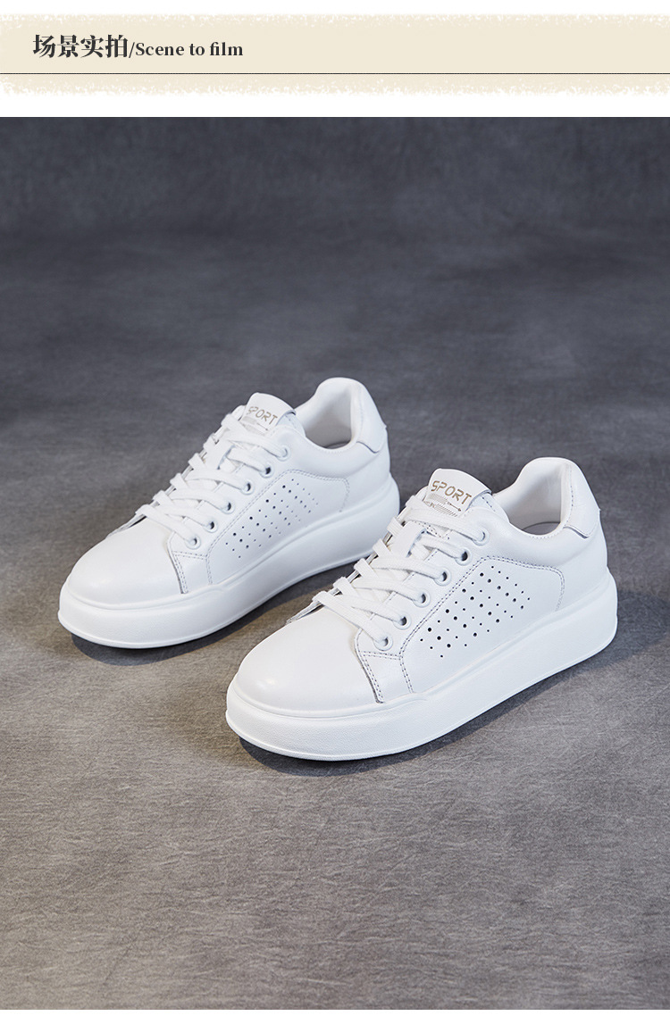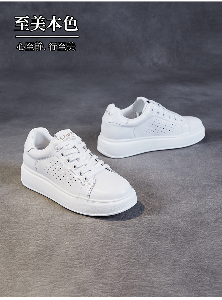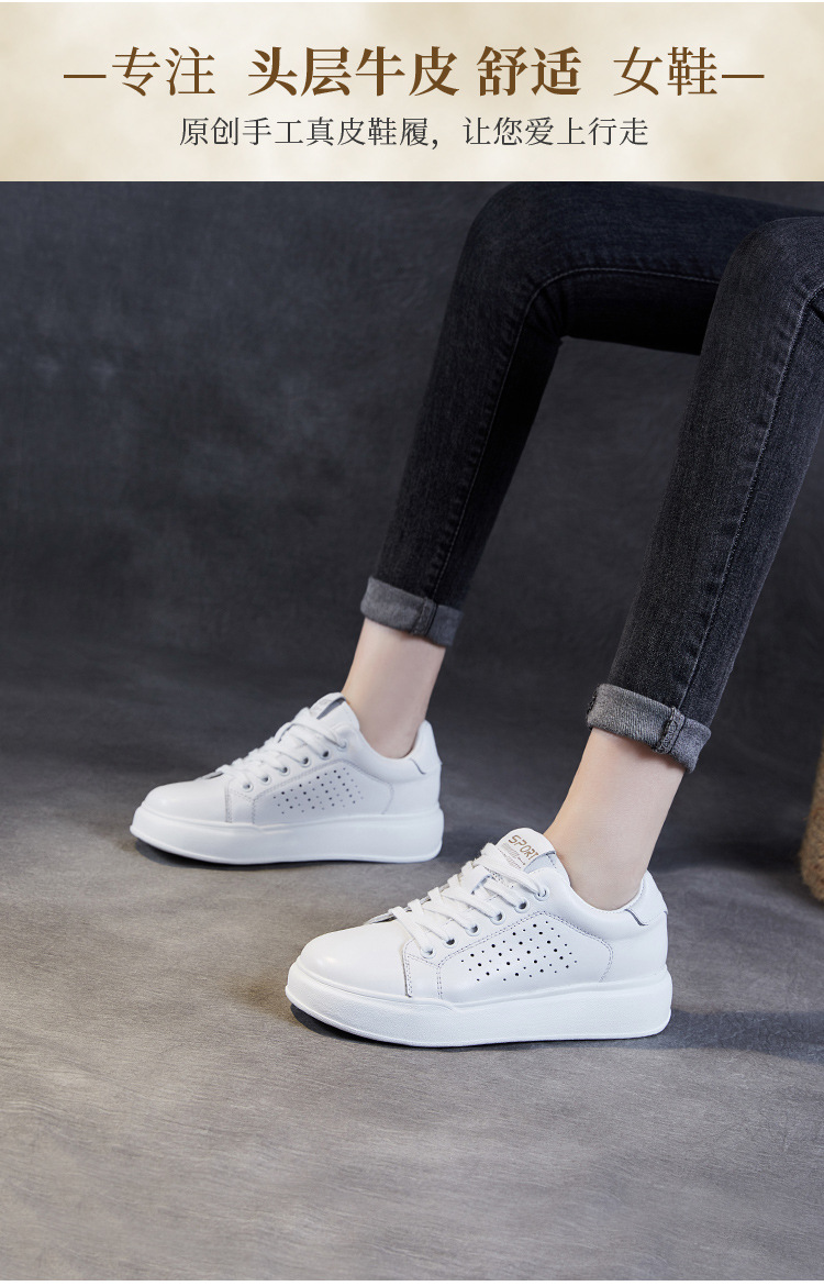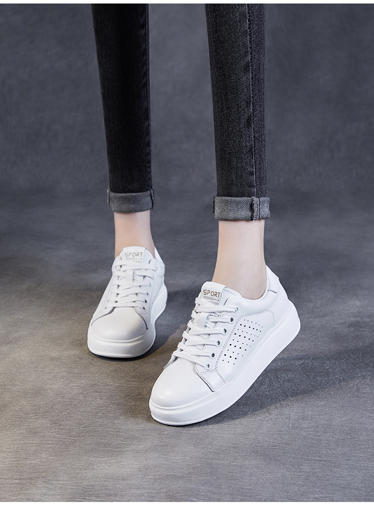 클래식 여성 화이트 신발 정품 가죽 패션 올 매치 트렌디 슈즈 할로우 통기성 편안한 두꺼운 하단 레이스 업 캐주얼 슈즈
