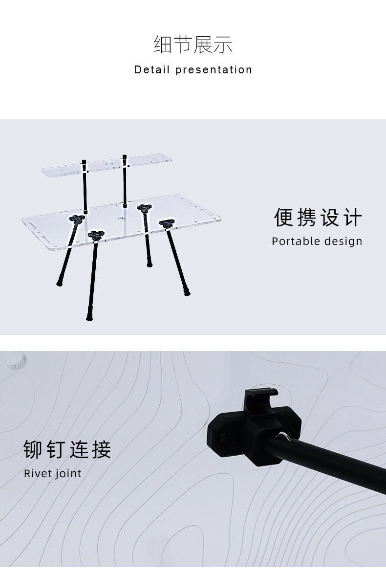 야외 캠핑 투명 아크릴 발광 테이블 야외 레저 여행 다기능 휴대용 접이식 수납 테이블