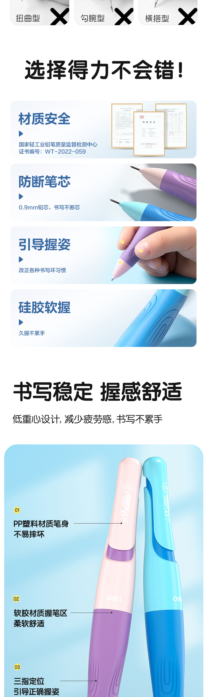 어린이를위한 0.9mm 연속 코어 보정 펜 자세로 초등학생을위한 델리 자동 연필 자세 보정 연필스토어 가기