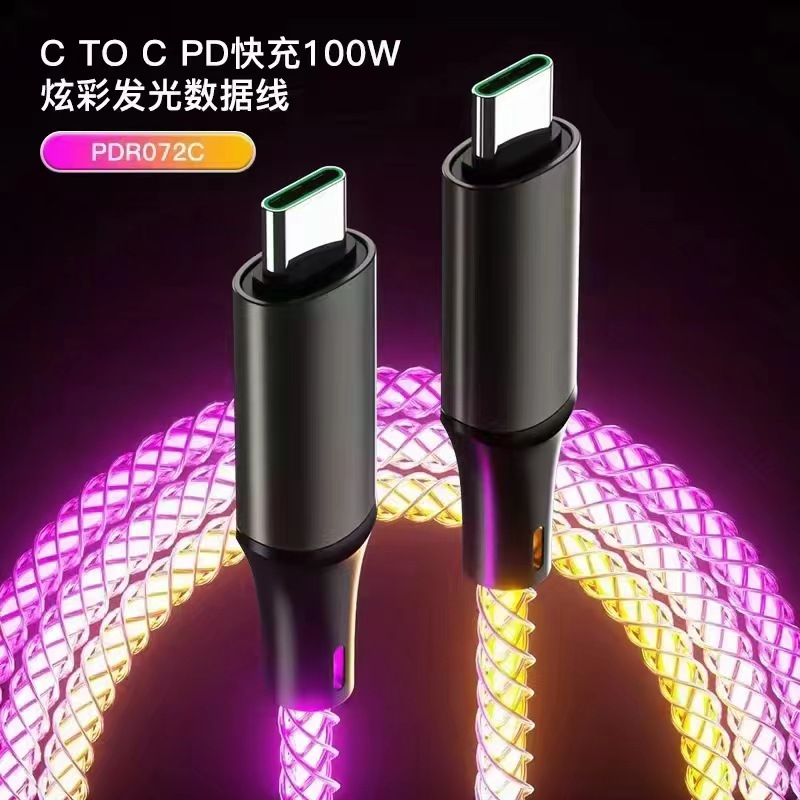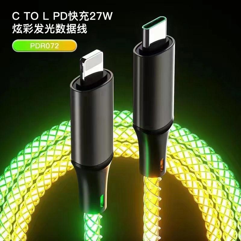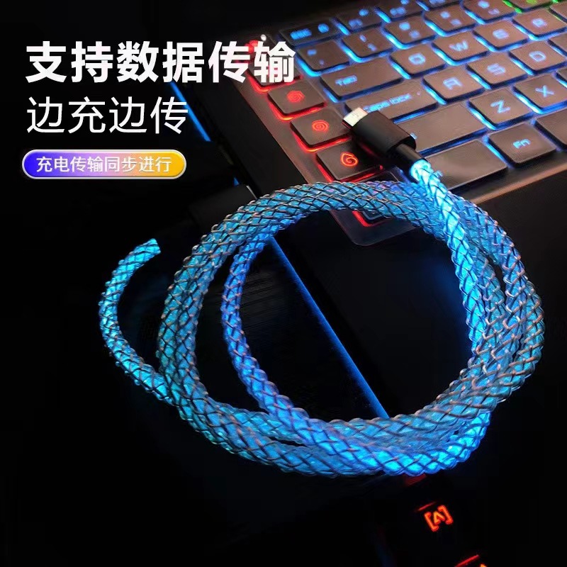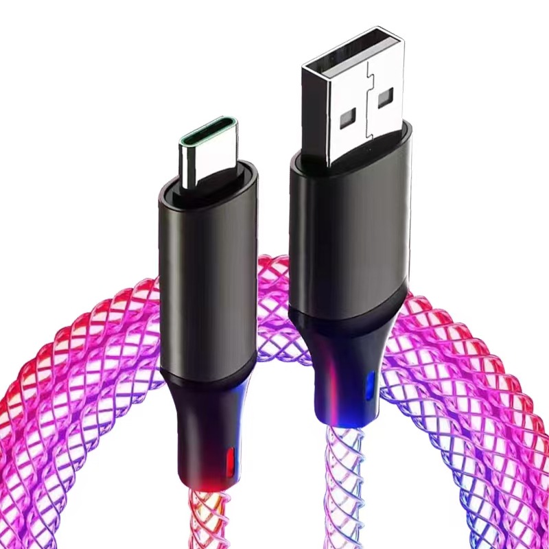다채로운 RGB 라이트 플로우 데이터 케이블, 애플 타입-C 60W 고속 충전 휴대폰 충전 케이블 USB에 적합스토어 가기