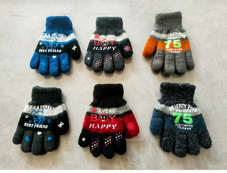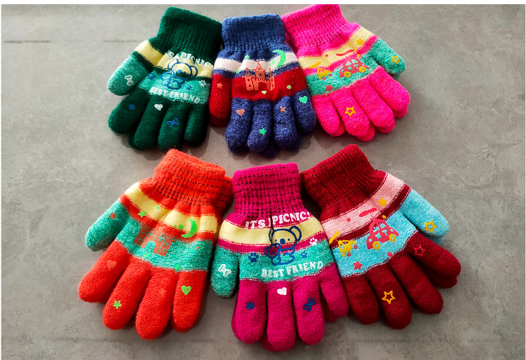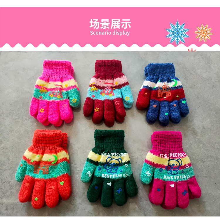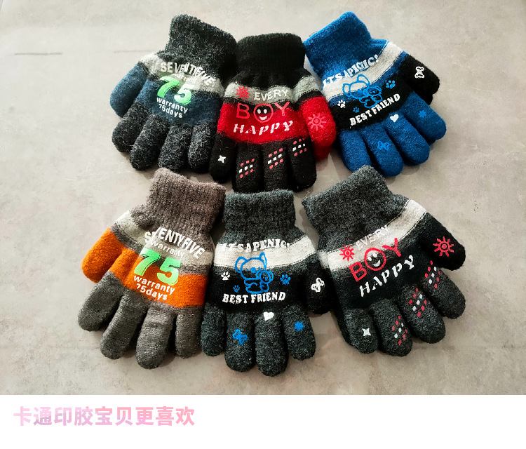 남성과 여성의 어린이 더블 레이어 기모 귀여운 만화 학생들은 학교 제조 업체에 이동 도매 마구간 따뜻한 니트 글쓰기 장갑스토어 가기