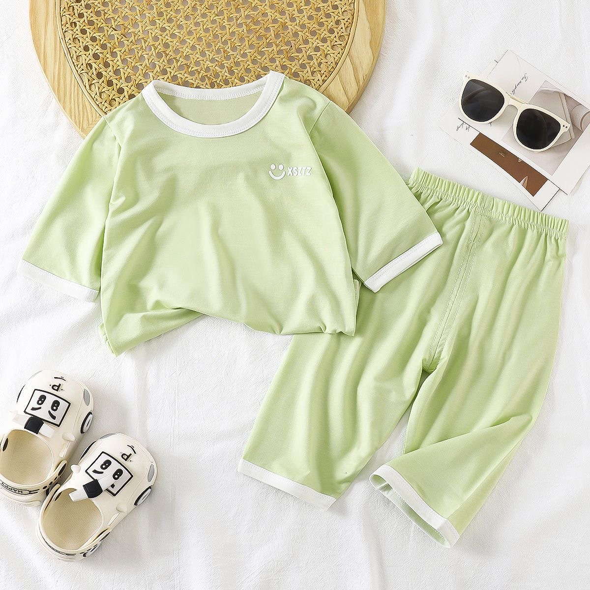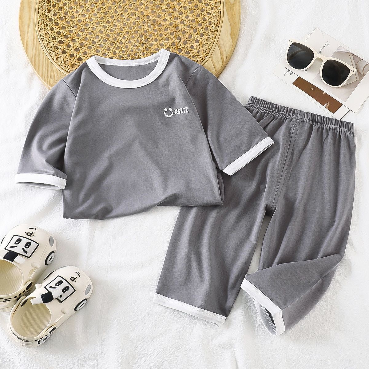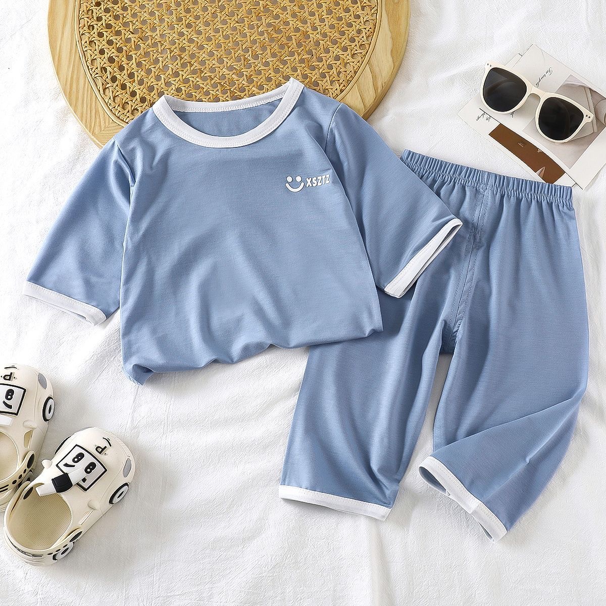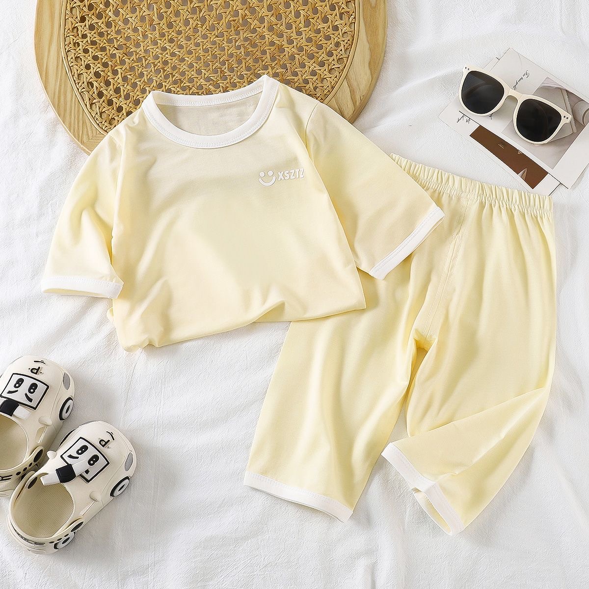 아동용 얇은 잠옷, 여아 및 유아용 7부 가정복 세트, 유아용 남아용 여름 에어컨 의류, 아이스 실크 팬츠스토어 가기
