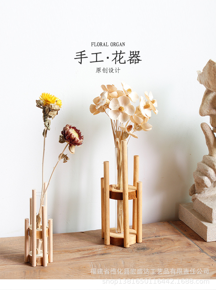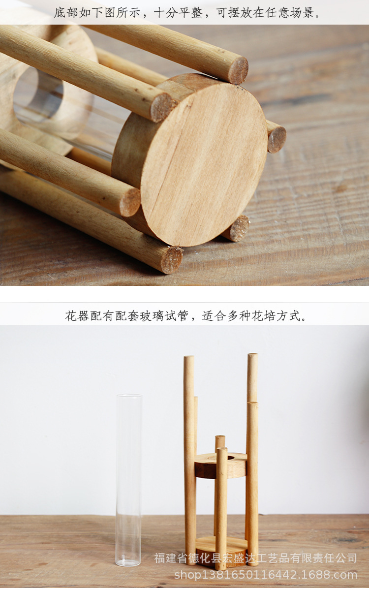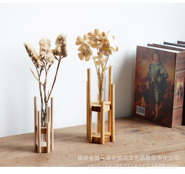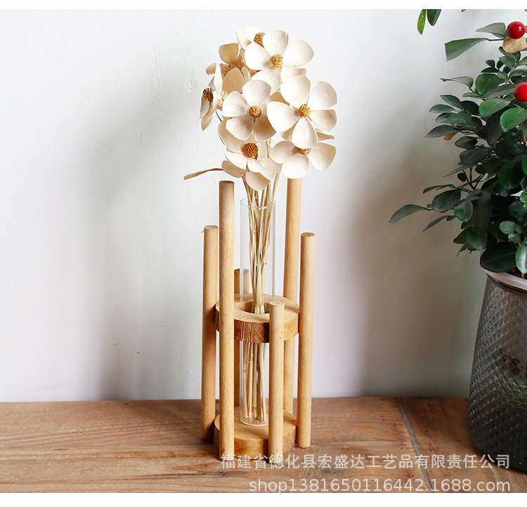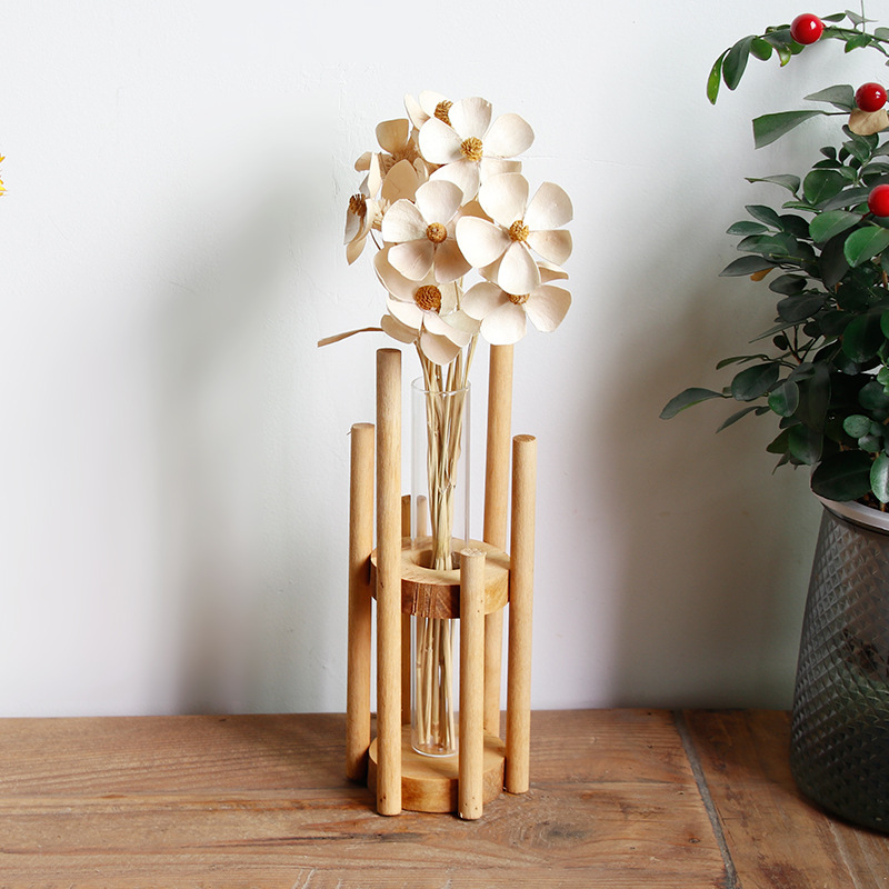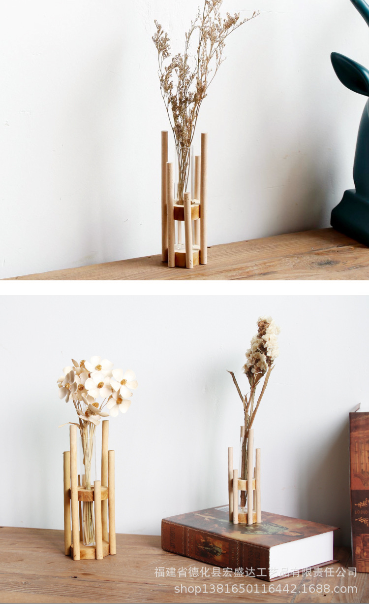 맞춤형 국경 간 꽃병, 중세 고급 단순 목재 공예품, 유리 수경 꽃병, 스타일리시하고 고급스러운스토어 가기