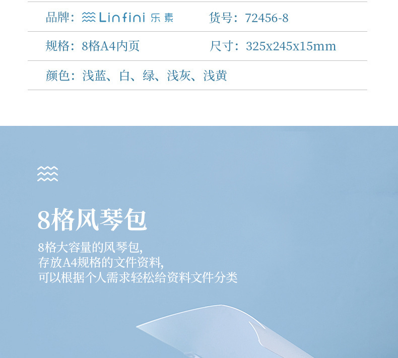 델리 72456 다층 문서 가방 A4 스냅 두꺼운 대용량 8 층 정보 가방 문서 커버 테스트 종이 보관 가방